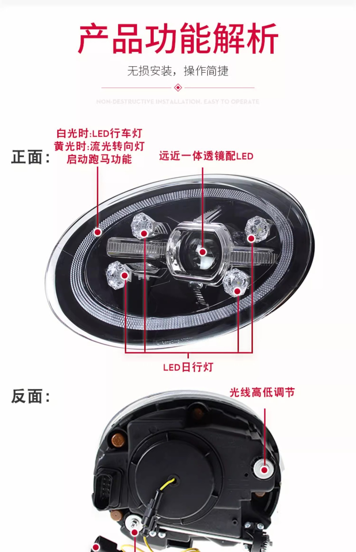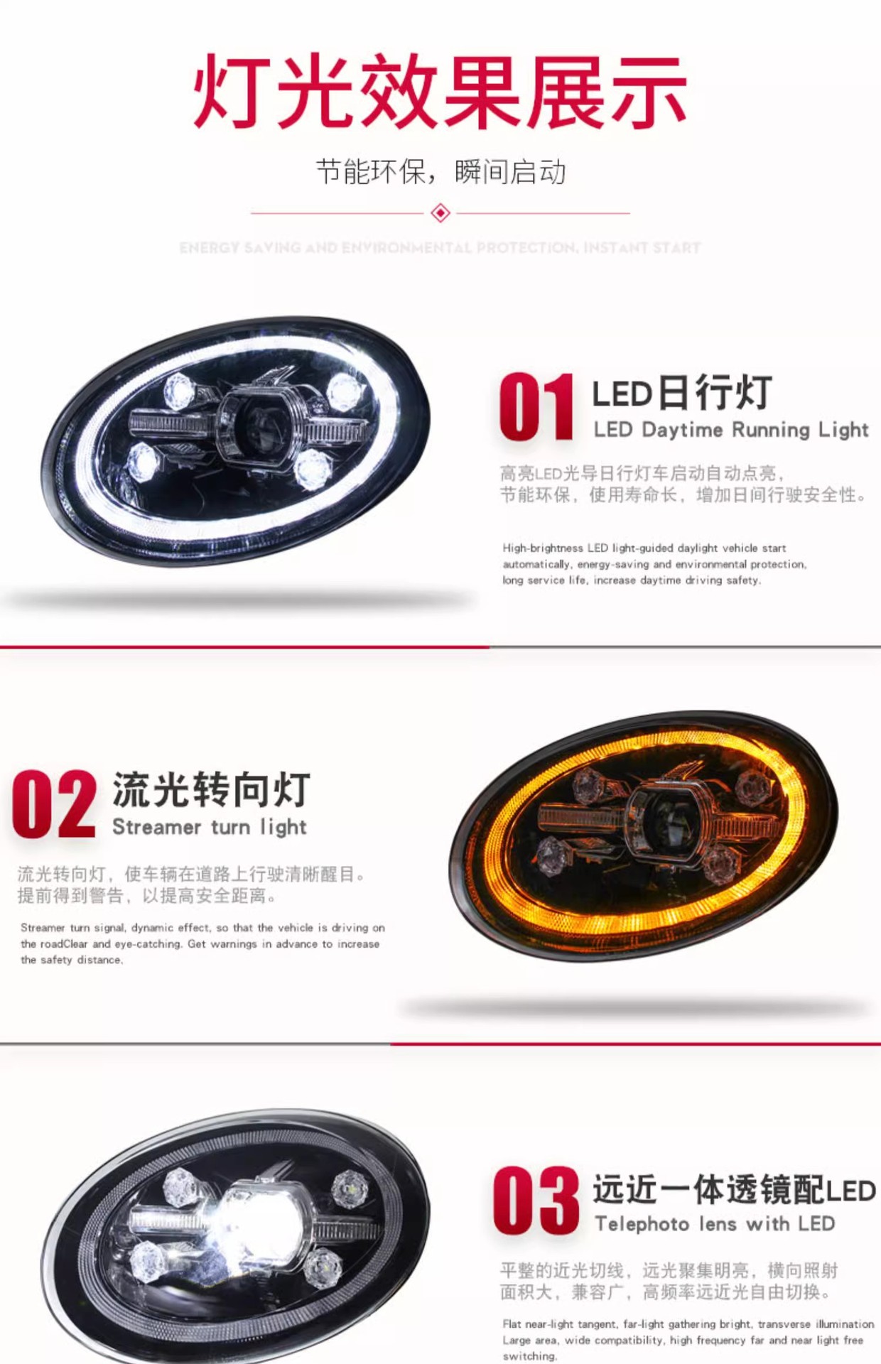 - Enhanced Aesthetics & Modern Style: Upgrade your Beetle’s look with a “Diamond Edition” full LED headlight, incorporating a bi-xenon projector, bright LED Daytime Running Lights (DRL), and dynamic sequential turn signals for a striking, contemporary appearance.