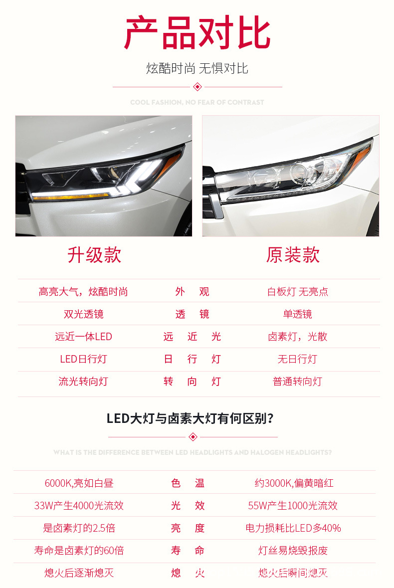 - Dynamic Blue LED DRL: Incorporates a distinctive “Blue Stream” LED Daytime Running Light (DRL) design, adding a modern, luxurious “Audi-style” visual upgrade that makes your Highlander stand out.