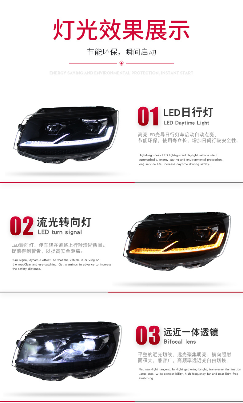 Full LED Headlight Assembly with DRL Flowing Turn Signal for VW Caravelle Multivan T6
