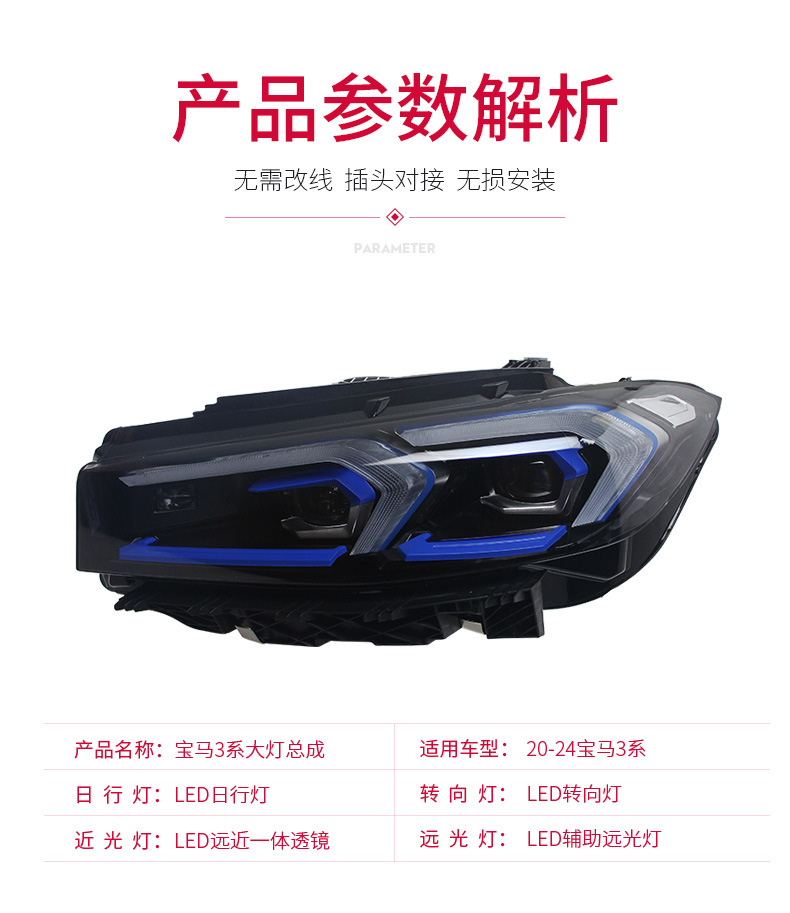 Full LED Headlight Assembly with DRL Signal Light for BMW 3 Series G20 G28 (2022-2024)