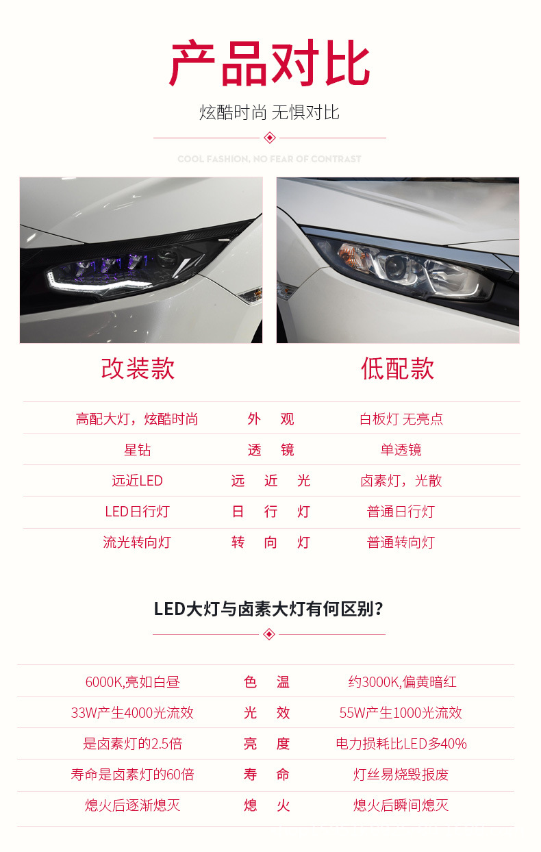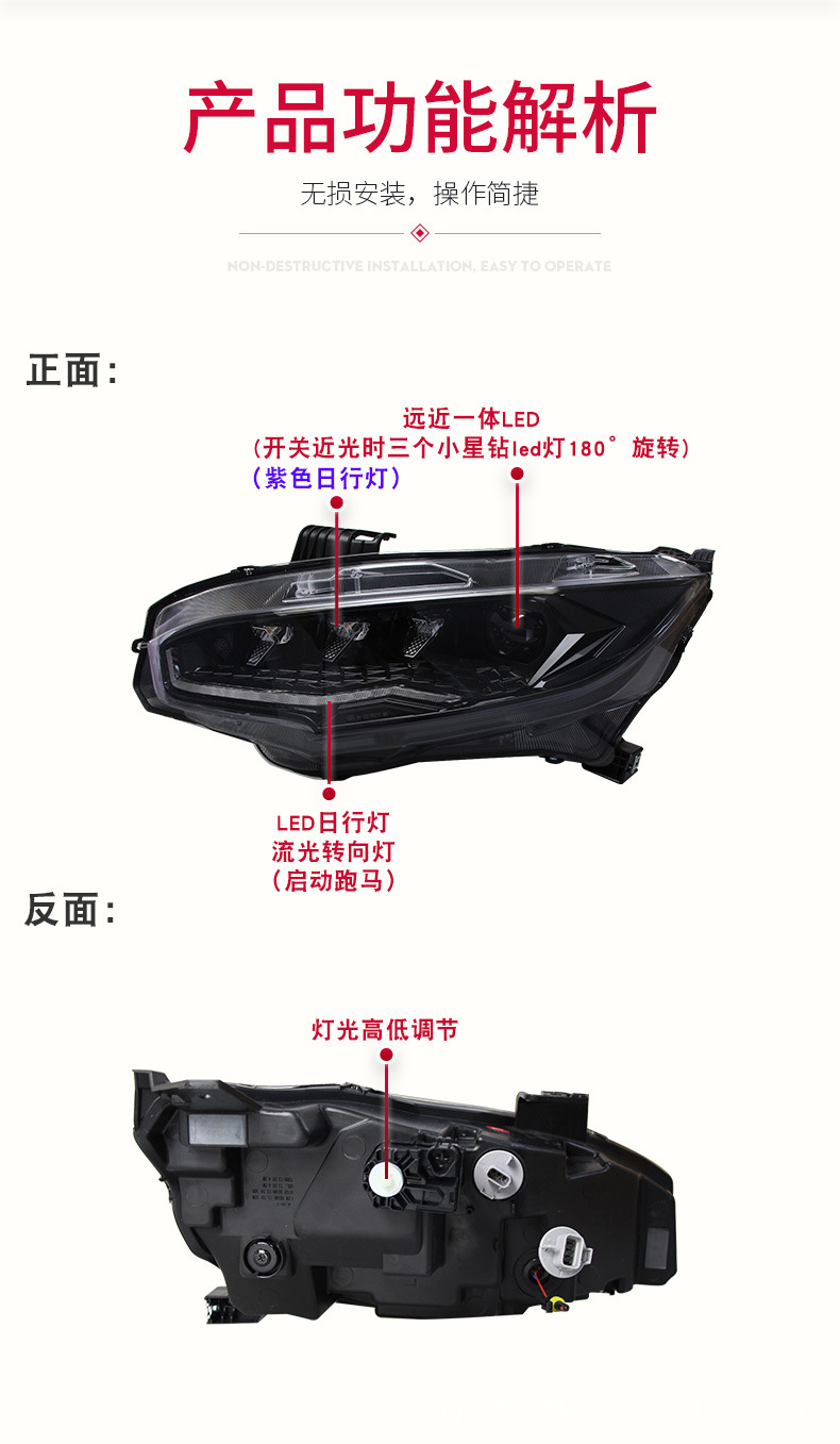 - Precise Fitment: Specifically designed for Honda Civic 10th Gen models (2016-2021), ensuring a perfect fit and seamless integration with your vehicle’s original structure. Direct replacement for existing headlamps.