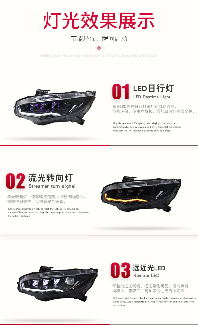 - Enhanced Day Running Lights (DRL): Incorporates bright LED Day Running Lights (DRL) that improve your vehicle’s presence during the day, increasing safety by making your car more noticeable to other drivers.