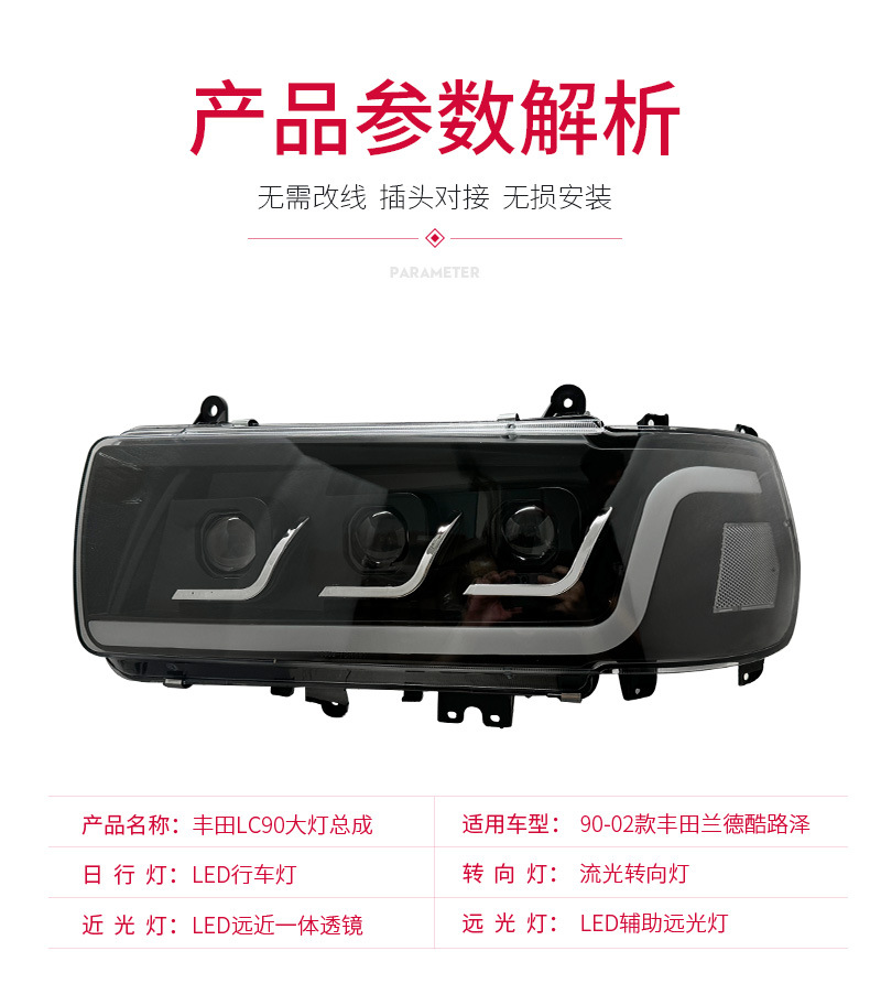 Full LED Headlight Assembly with DRL Signal Light for Toyota Land Cruiser LC80 1990-2002