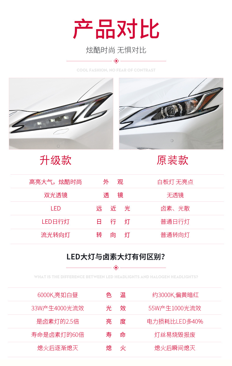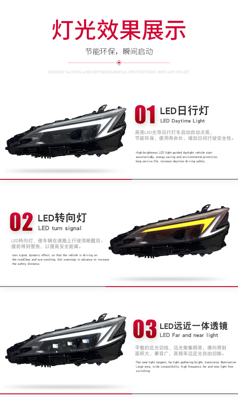 - Enhanced Aesthetics & Style: Upgrade your Lexus ES with modern LED daytime running lights (DRL) and dynamic sequential turn signals, providing a sleek, luxurious appearance and improved visibility on the road.