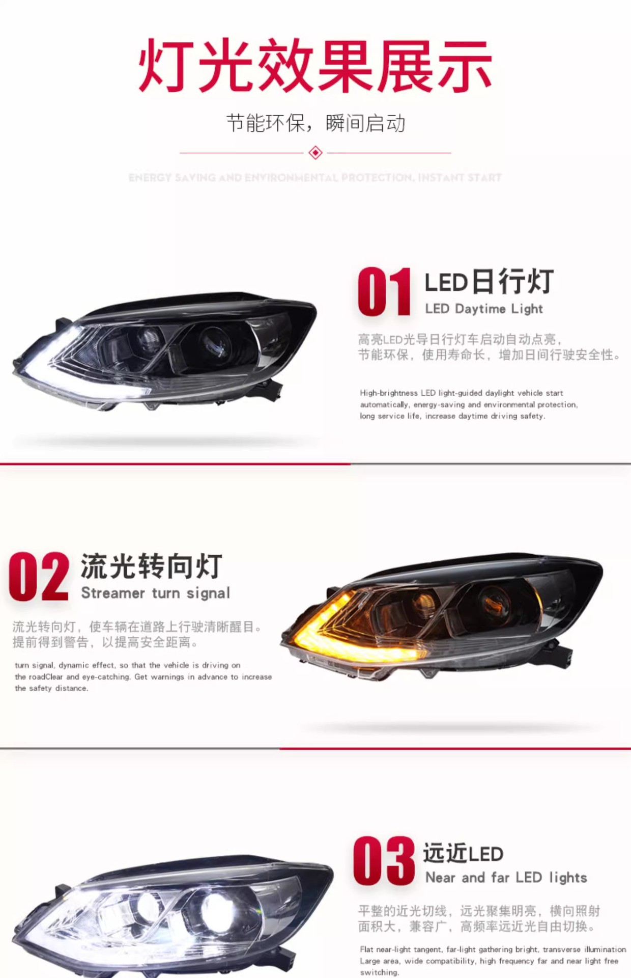 Full LED Headlight Assembly with DRL Sequential Turn Signal for Nissan Tiida C13 (2016-2019)