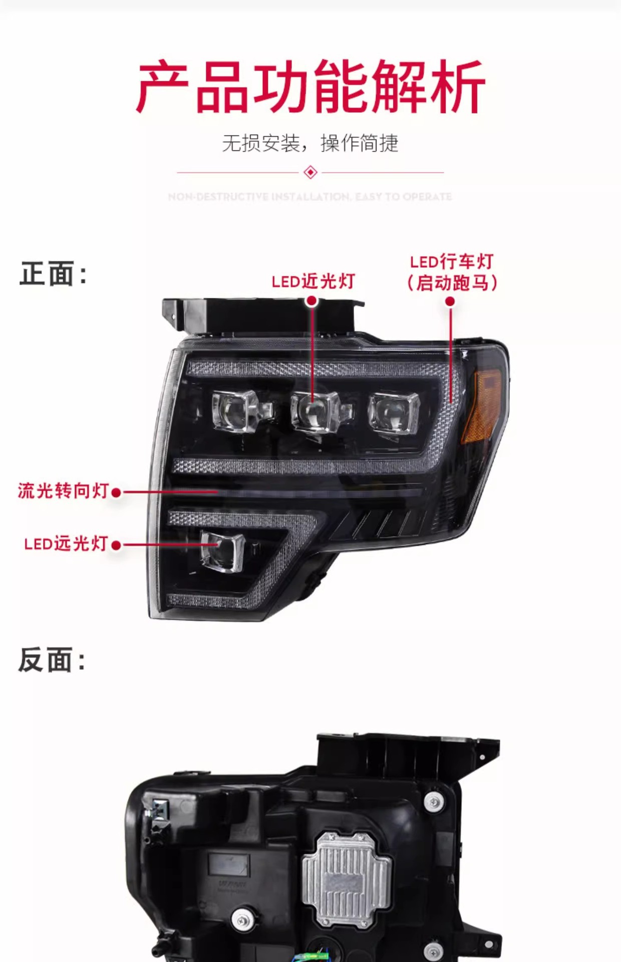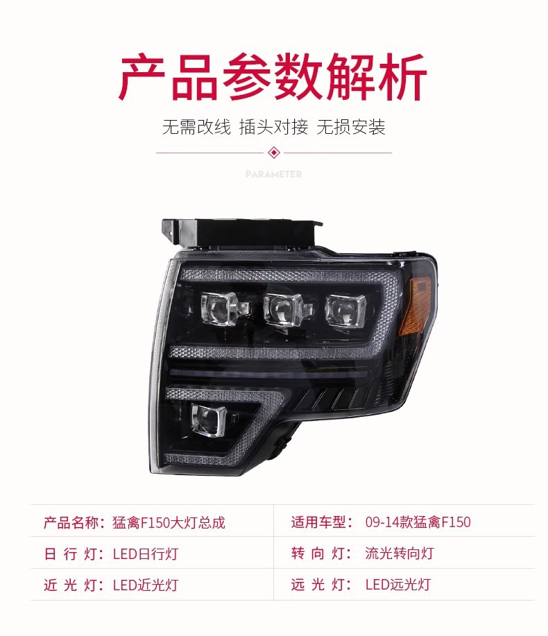 - Precise Fitment: Specifically designed for Ford F-150 Raptor models from 2008 to 2014, ensuring a perfect, direct-fit replacement for your original headlights.
