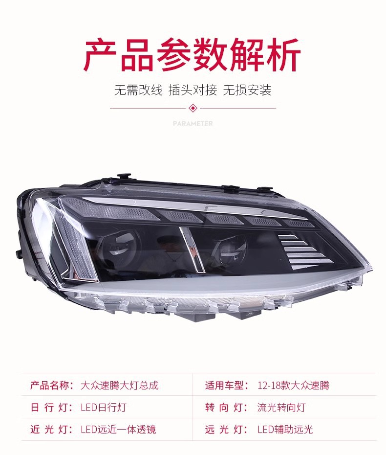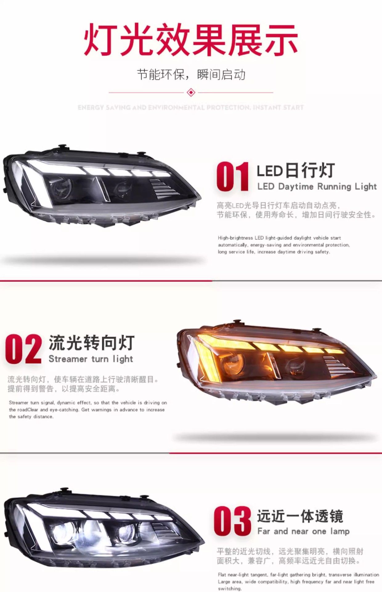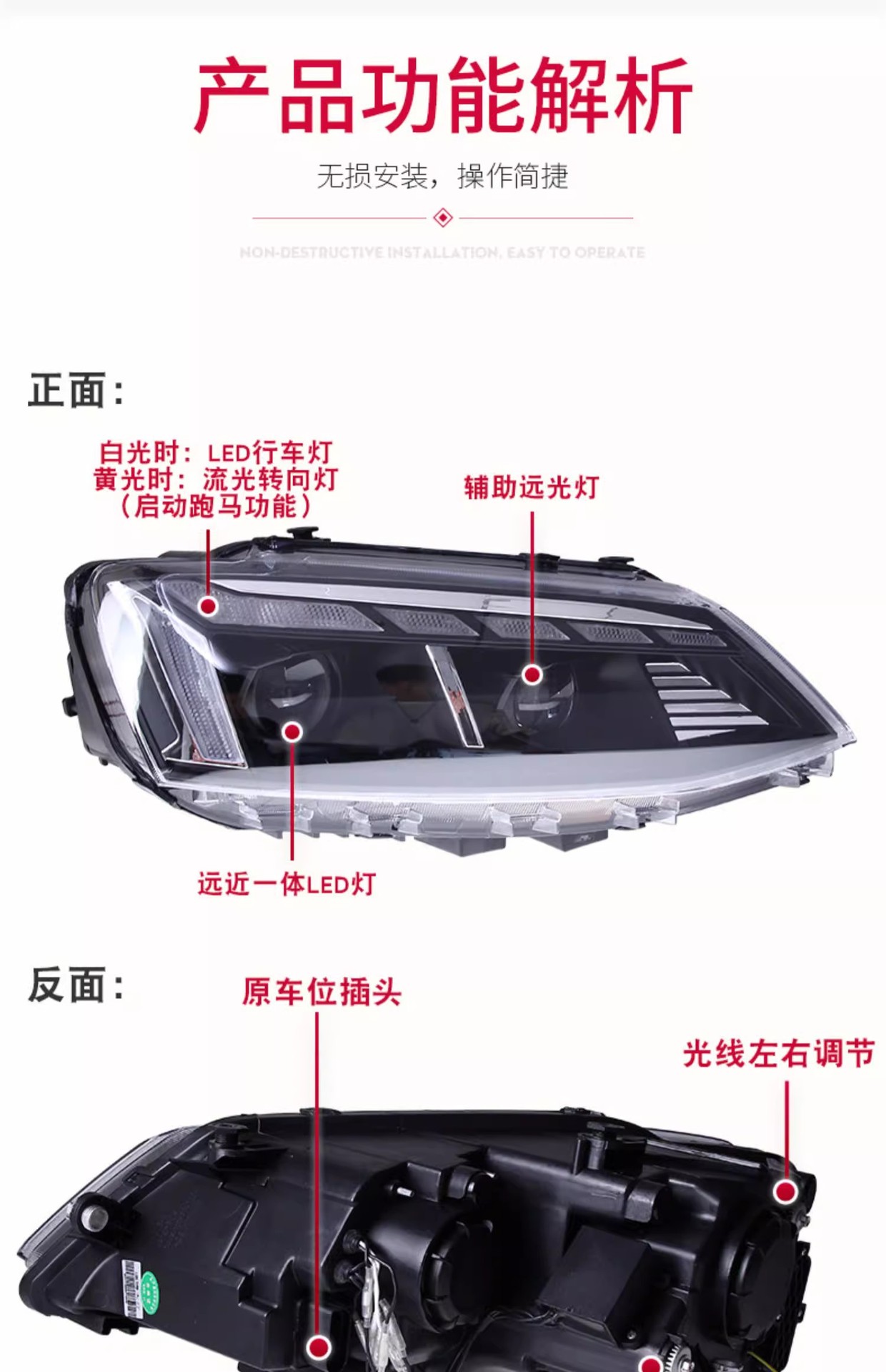Full LED Headlight Assembly with DRL Signal Light Dual-Beam Projector Lens for VW Sagitar 2012-2018