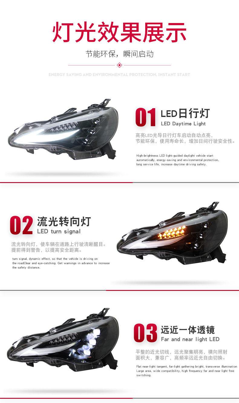 Full LED Headlight Assembly with DRL Sequential Turn Signal for Toyota GT86 Subaru BRZ