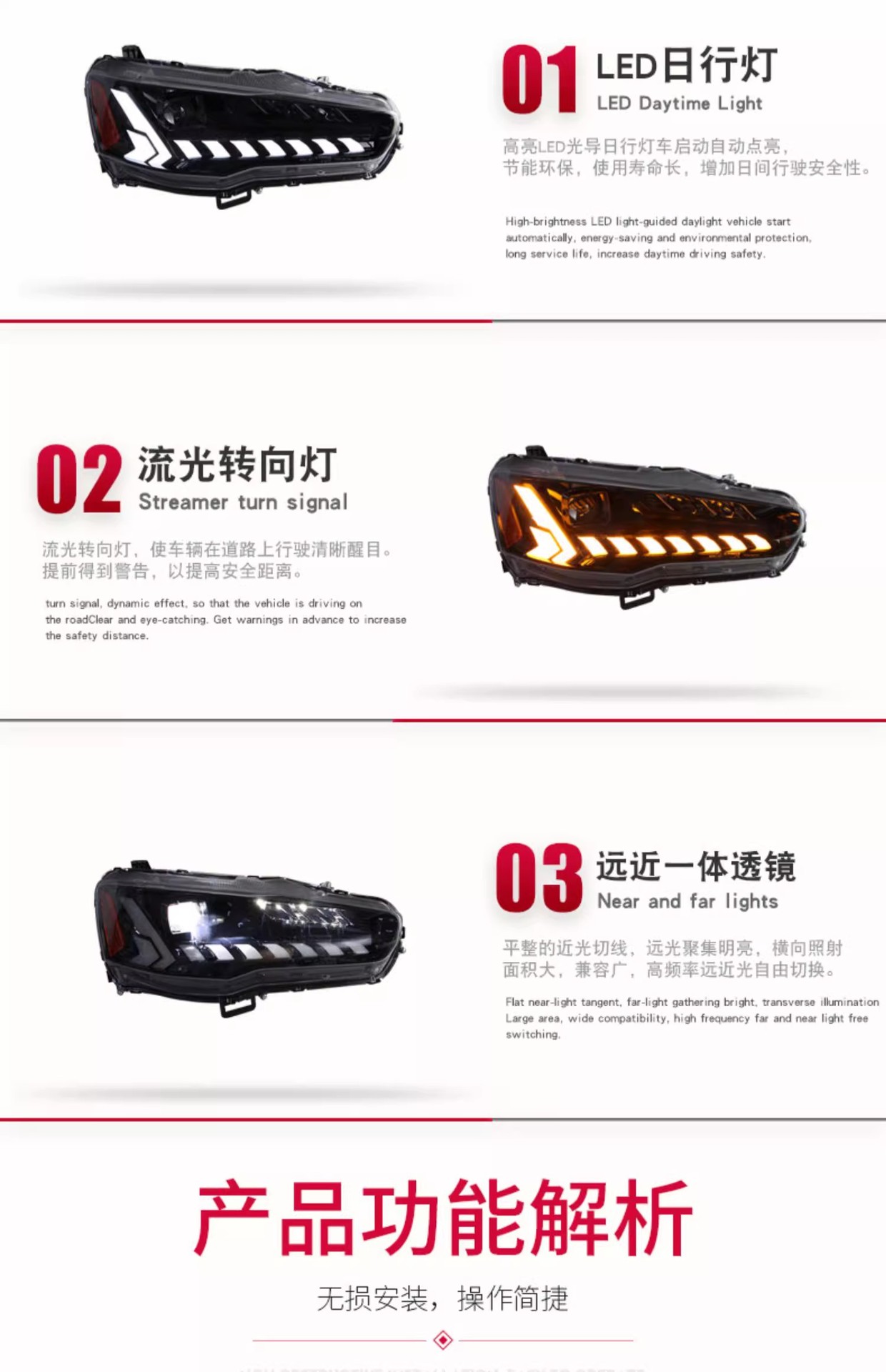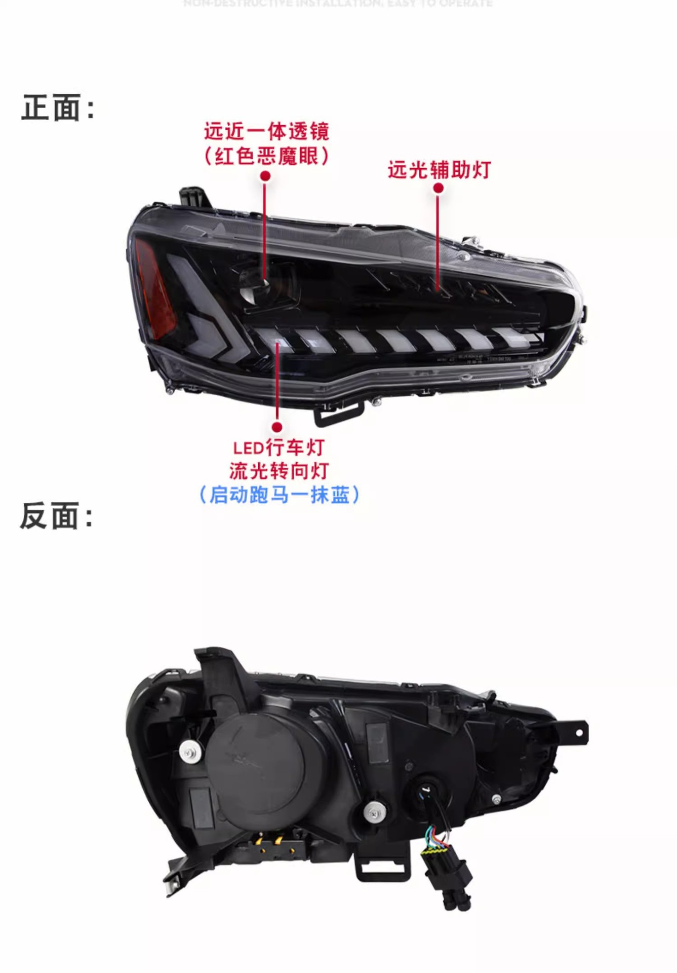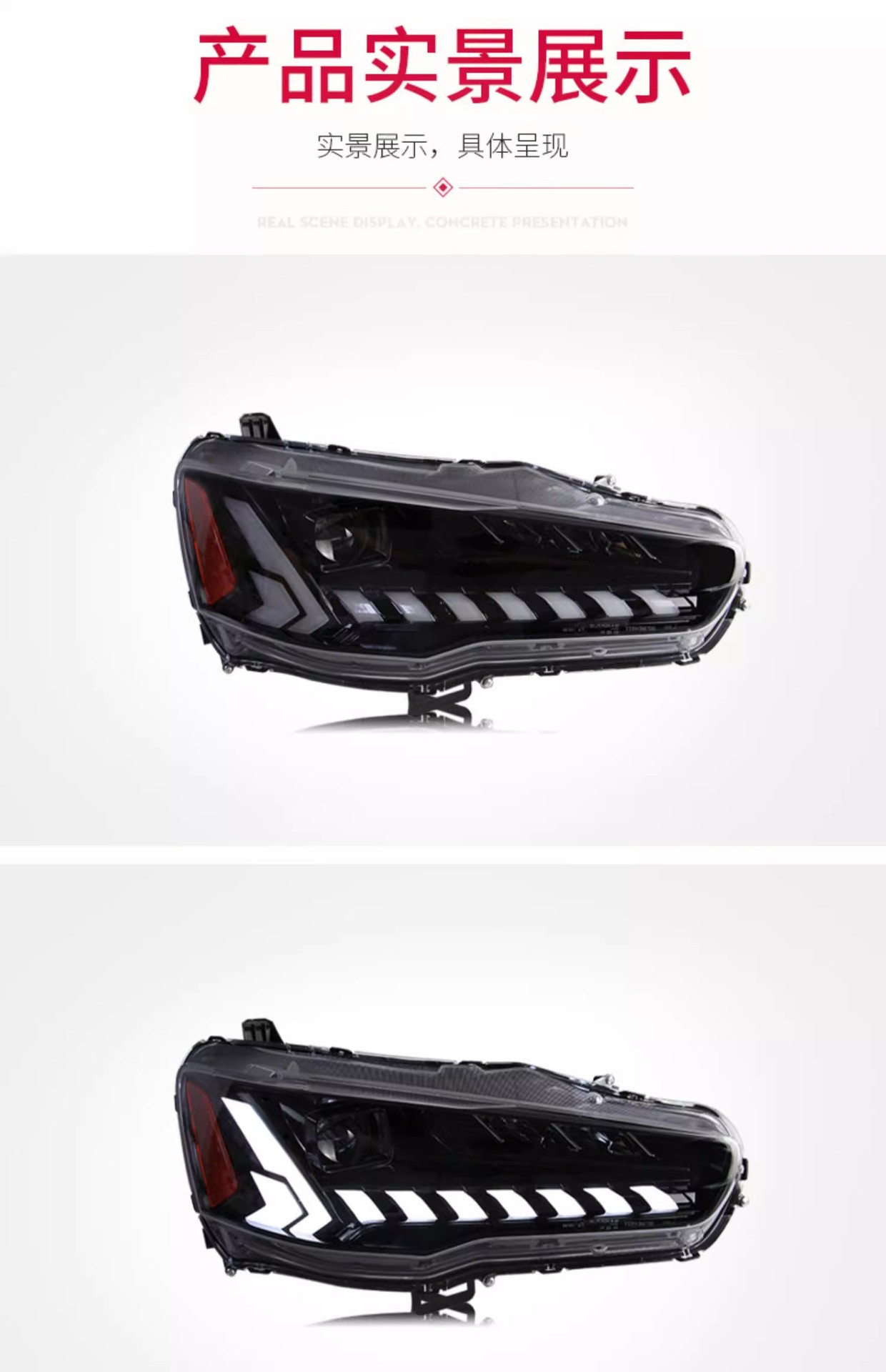 Full LED Headlight Assembly with DRL Sequential Turn Signal for Mitsubishi Lancer Evolution (2009-2016)
