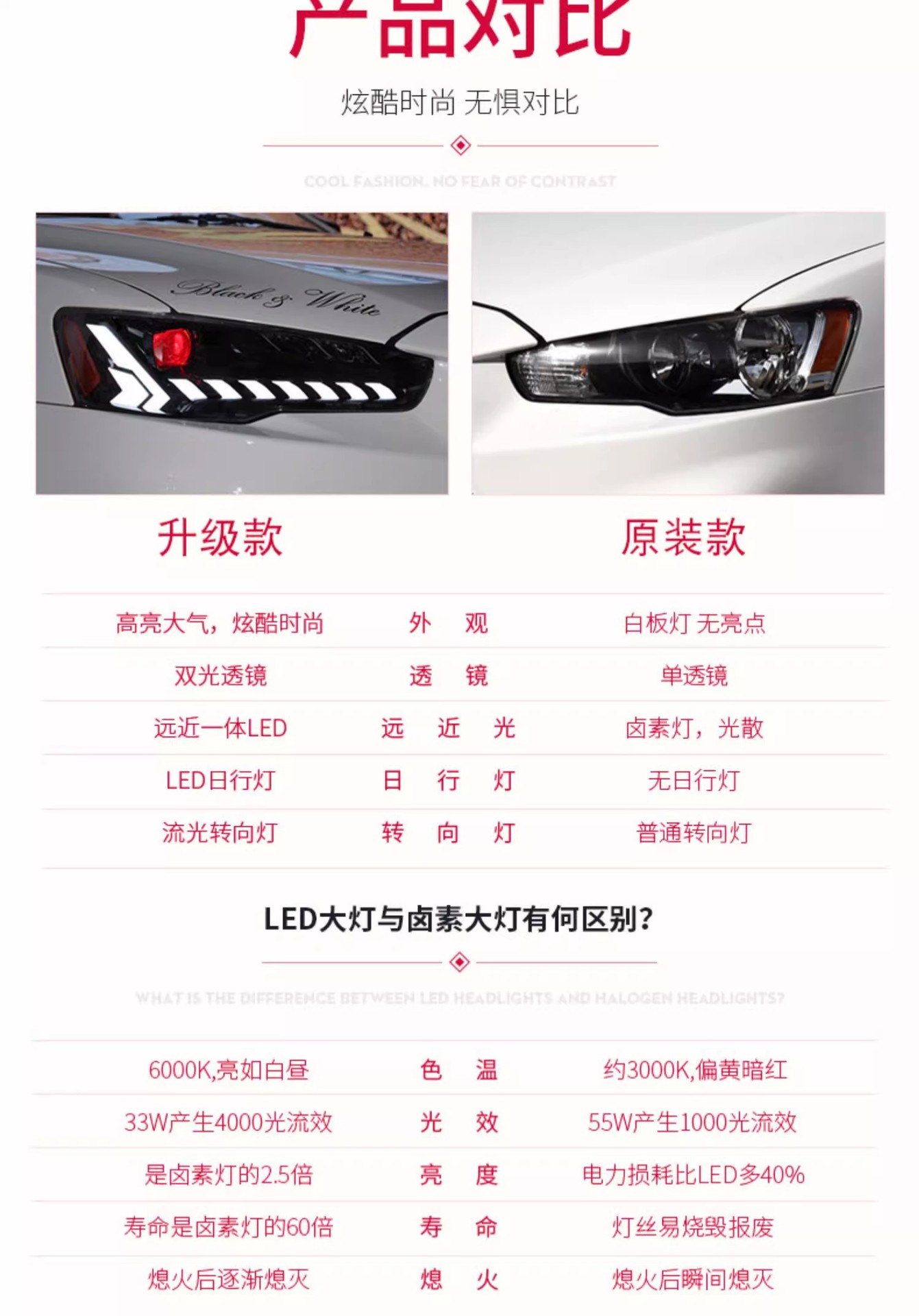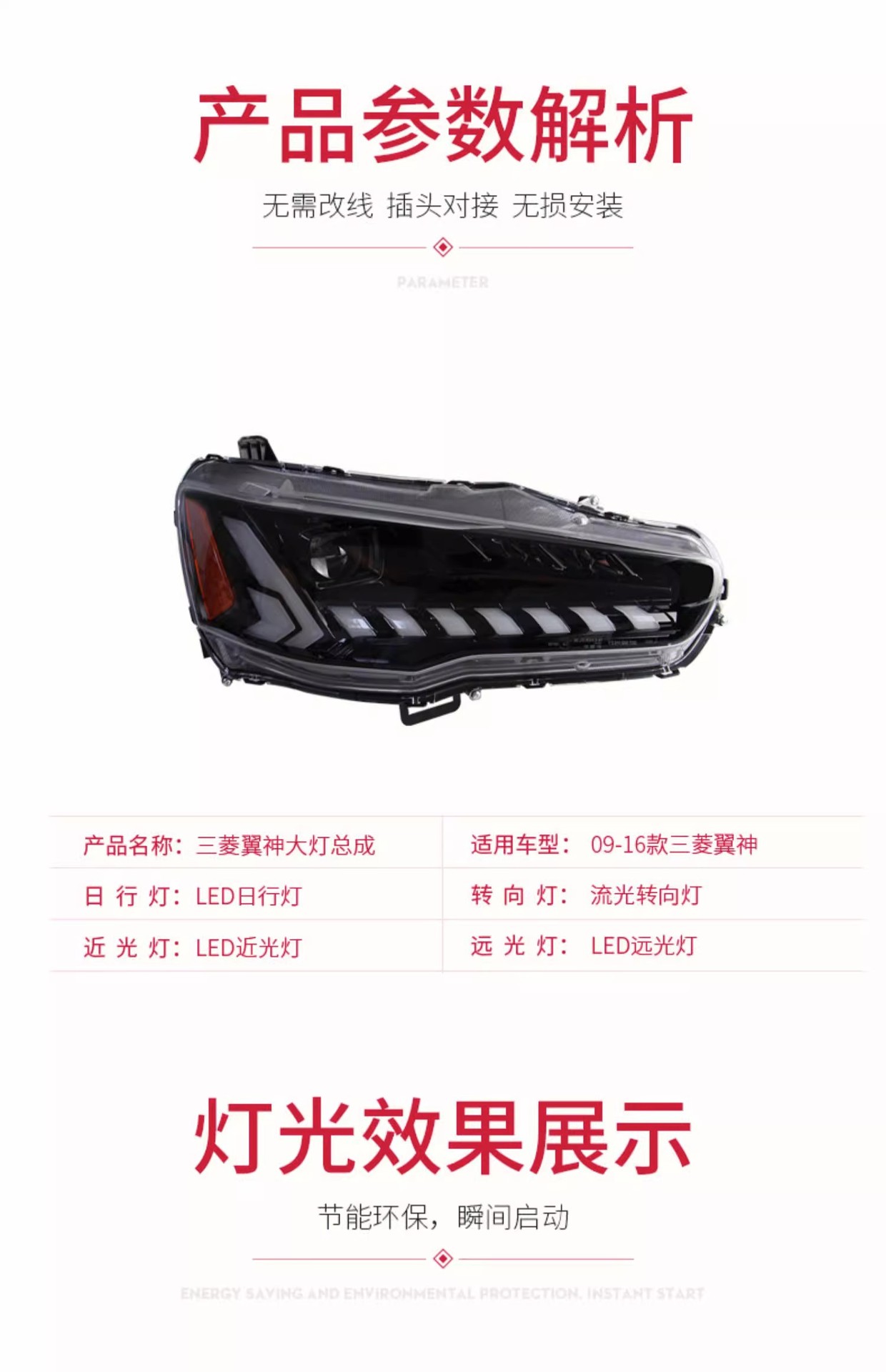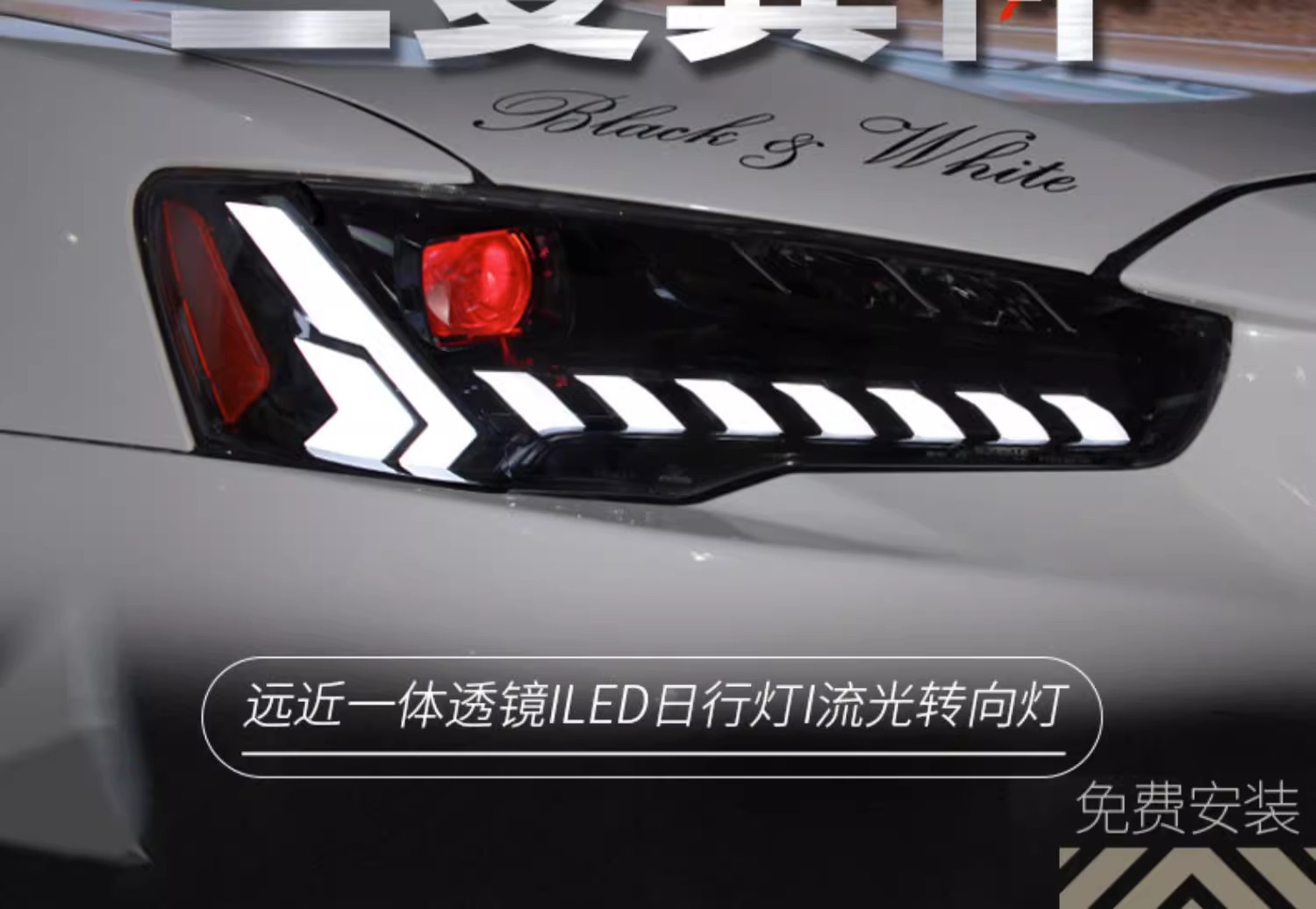 Full LED Headlight Assembly with DRL Sequential Turn Signal for Mitsubishi Lancer Evolution (2009-2016)