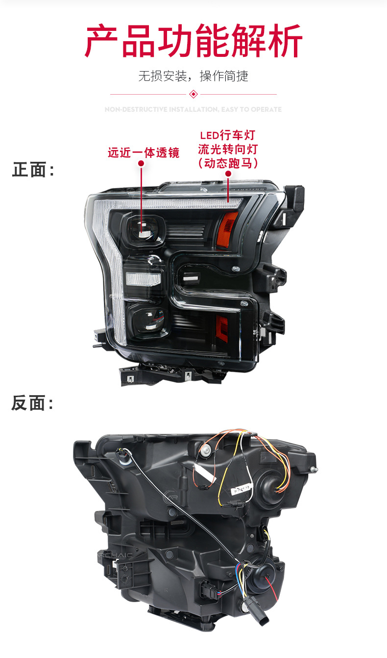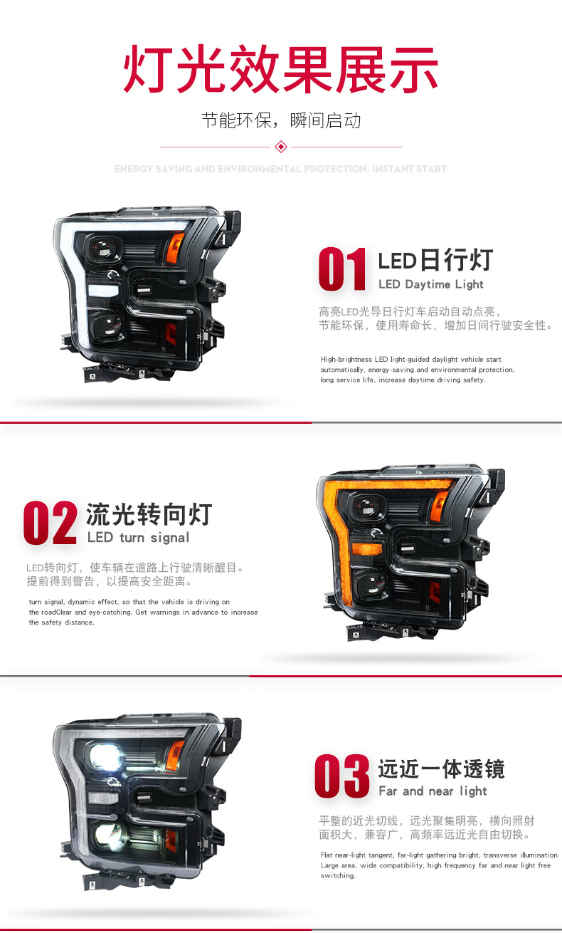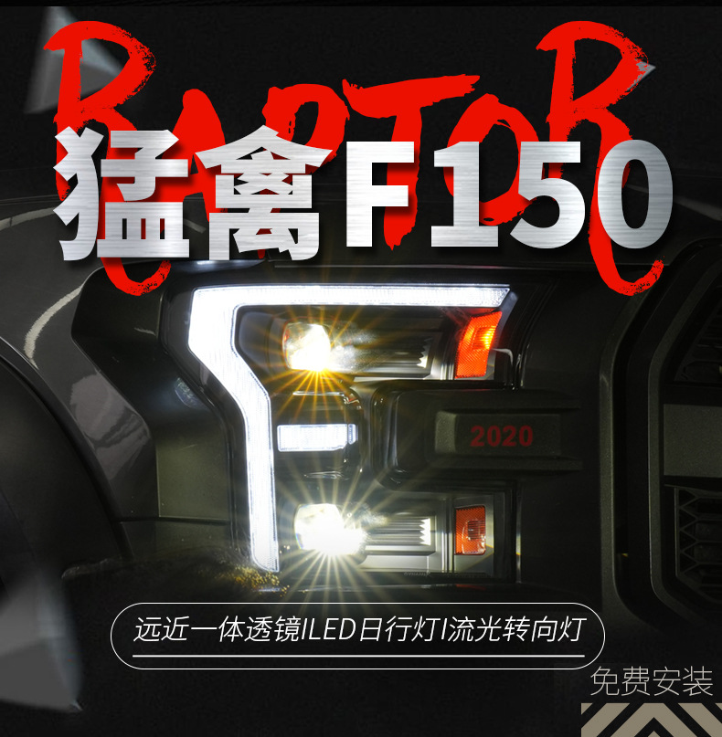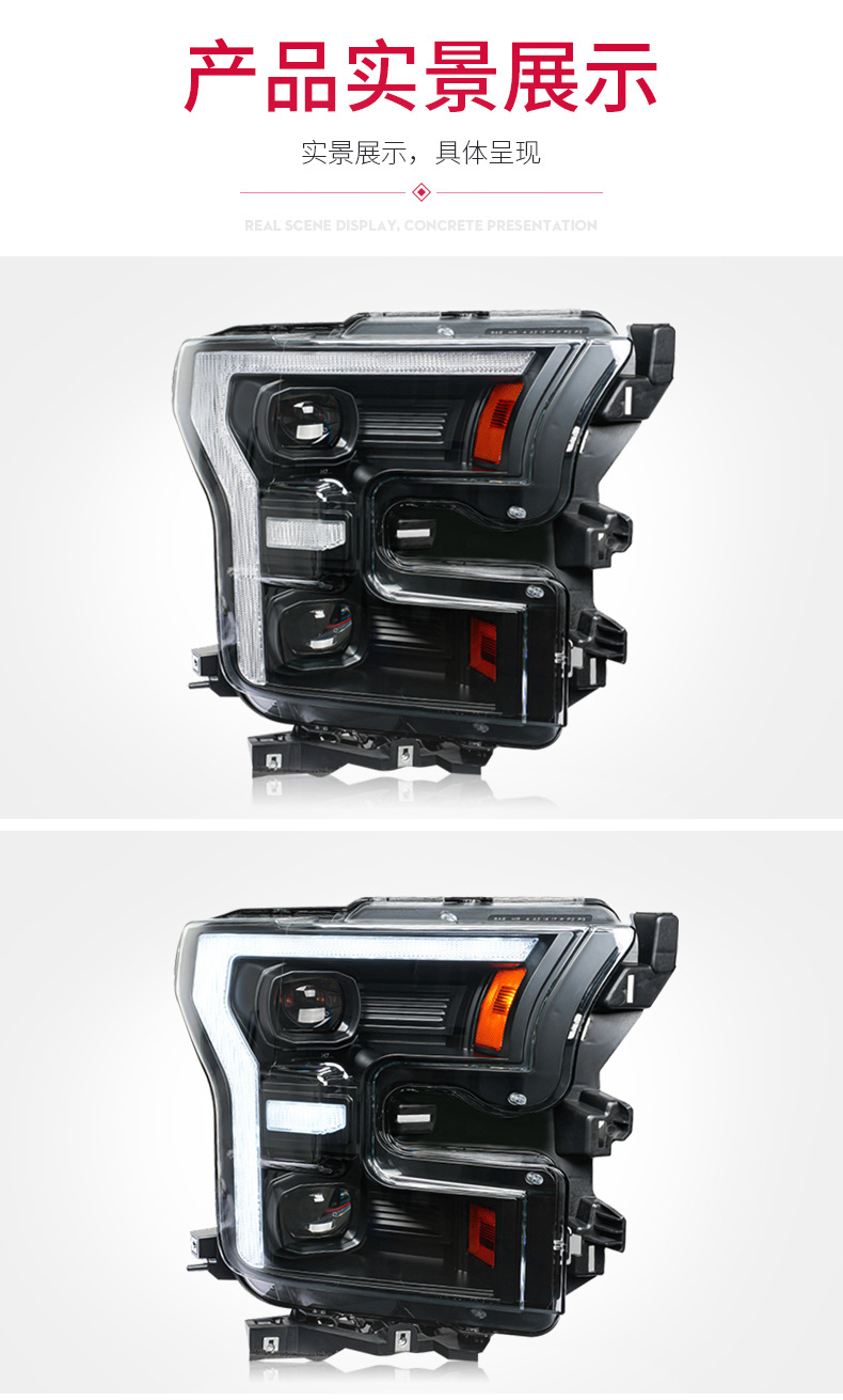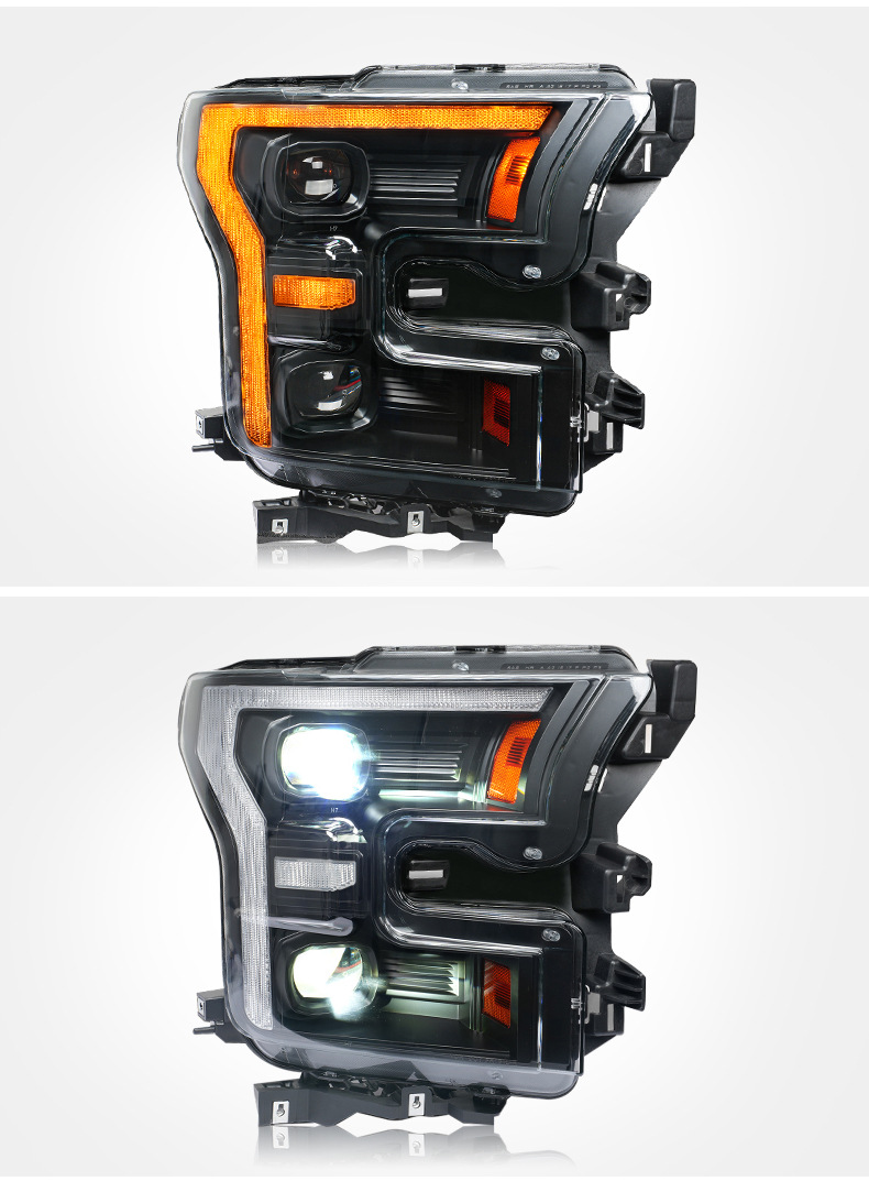 Full LED Headlight Assembly with DRL Flowing Turn Signal Projector for Ford F-150 Raptor 2015-2020