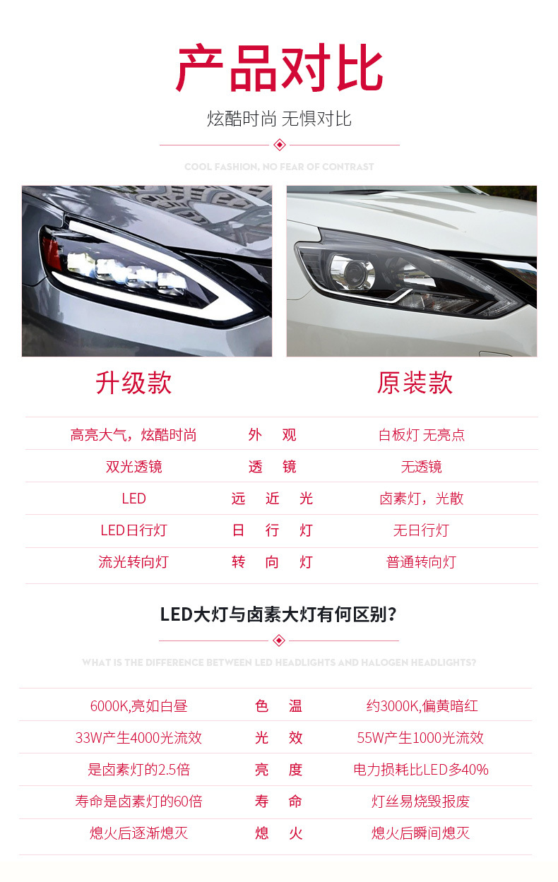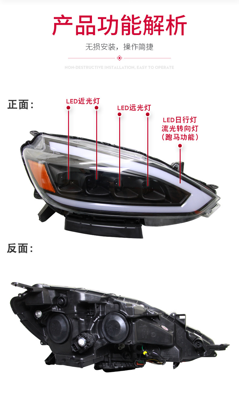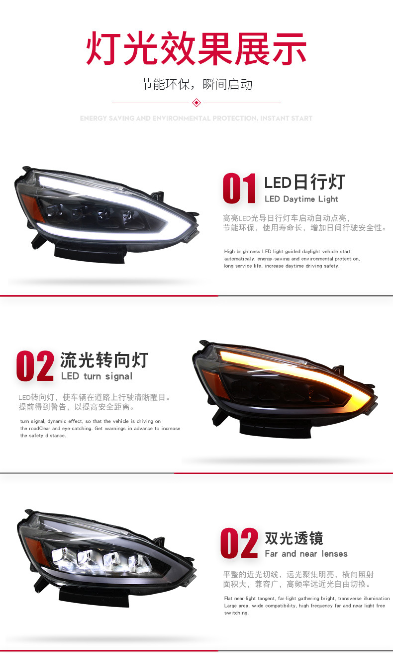- Enhanced Aesthetics & Style: Features a sleek, modern design with integrated LED Daytime Running Lights (DRLs) and turn signals, transforming the front end of your Sentra with a stylish and aggressive look.