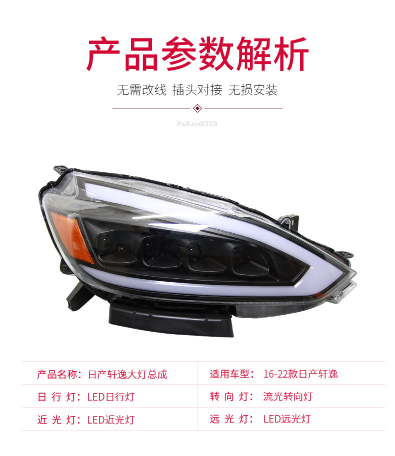 Full LED Headlight Assembly with Daytime Running Light Turn Signal Projector Lens for Nissan Sentra (2016-2022)