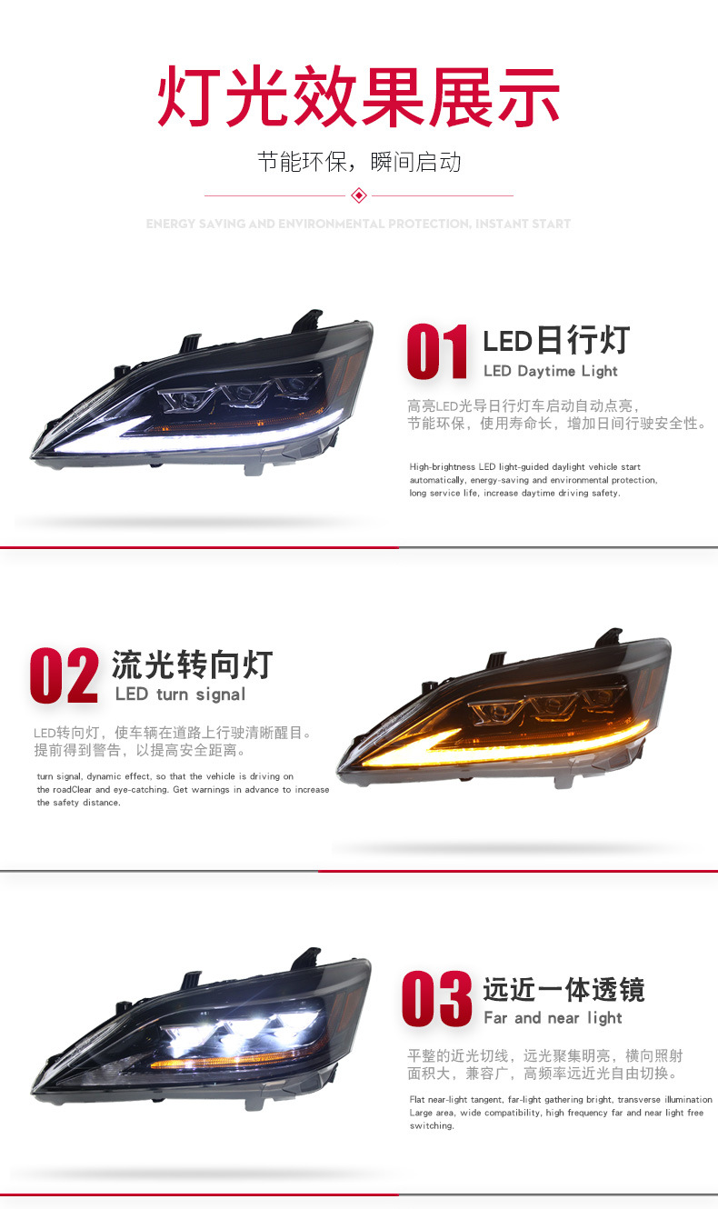 Full LED Headlight Assembly with Daytime Running Light & Sequential Turn Signal for Lexus ES 2006-2012