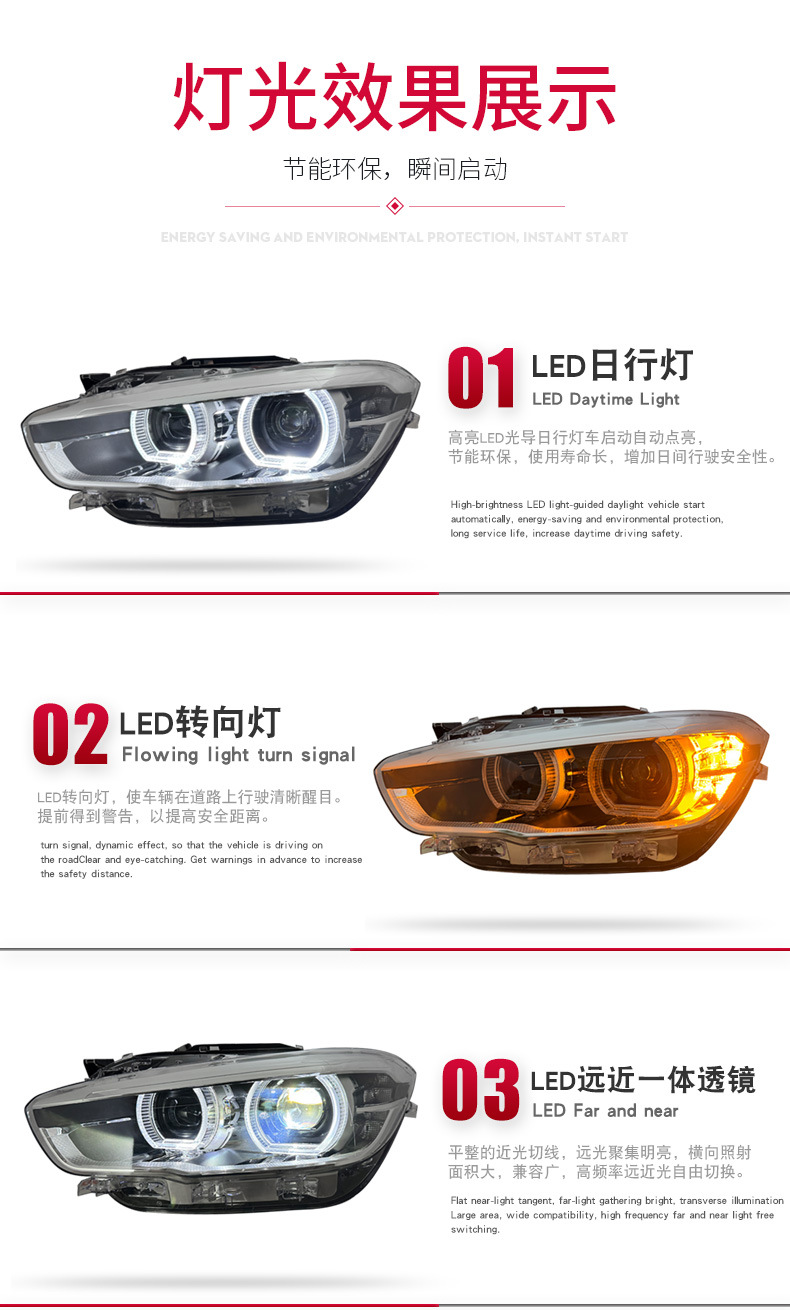 Full LED Headlight Assembly with Daytime Running Light Projector Lens for BMW 1 Series F20 (2015-2018)