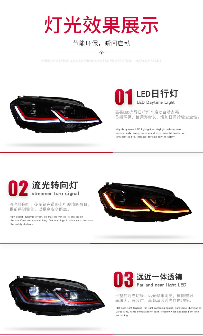 Full LED Headlight Assembly with Daytime Running Light Flowing Turn Signal Projector Headlight for Volkswagen Golf 7 Mk7