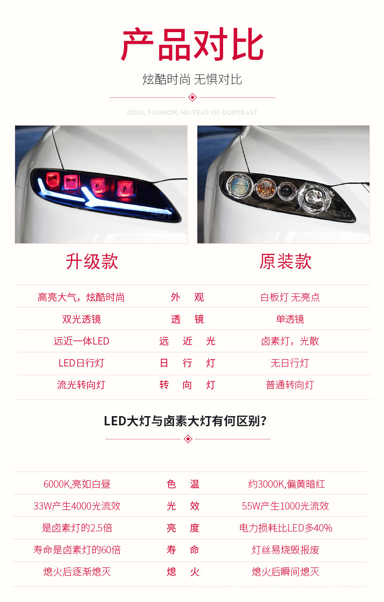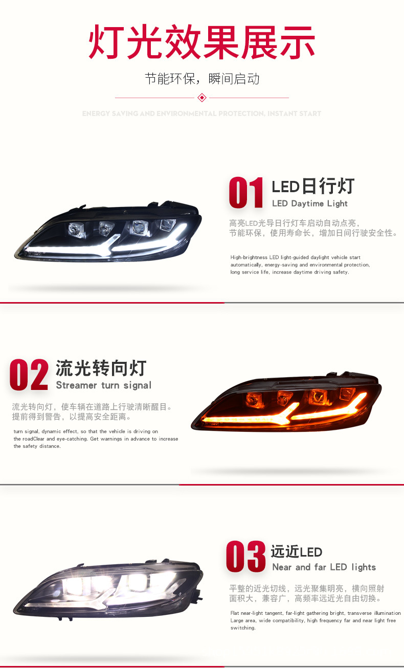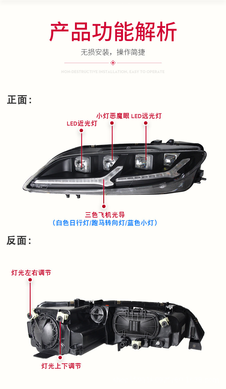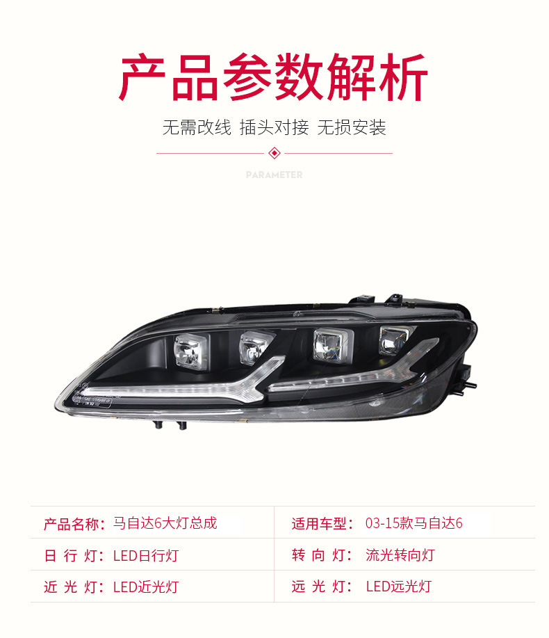 - Enhanced Aesthetics & Style: Features integrated LED Daytime Running Lights (DRL) and dynamic flowing turn signals, along with unique Devil Eye accents, transforming the front end of your Mazda 6 for a modern, aggressive, and distinctive look.