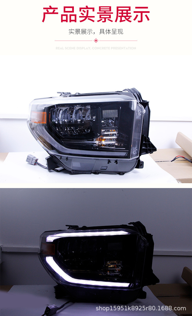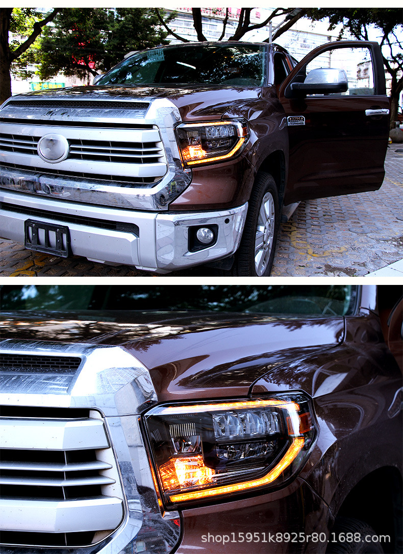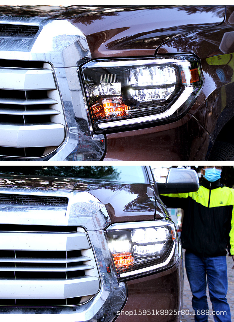 Full LED Headlight Assembly with Daytime Running Lights Sequential Turn Signal for Toyota Tundra 2014-2018