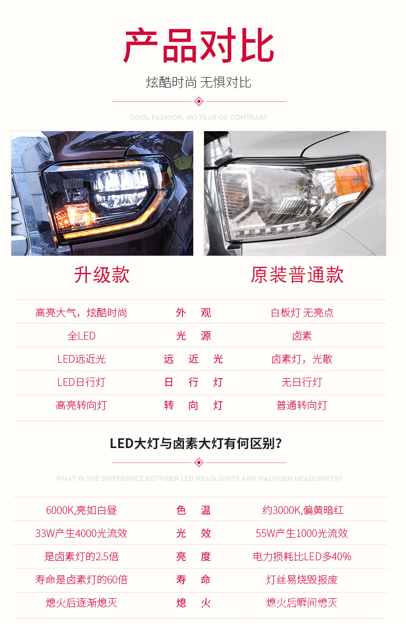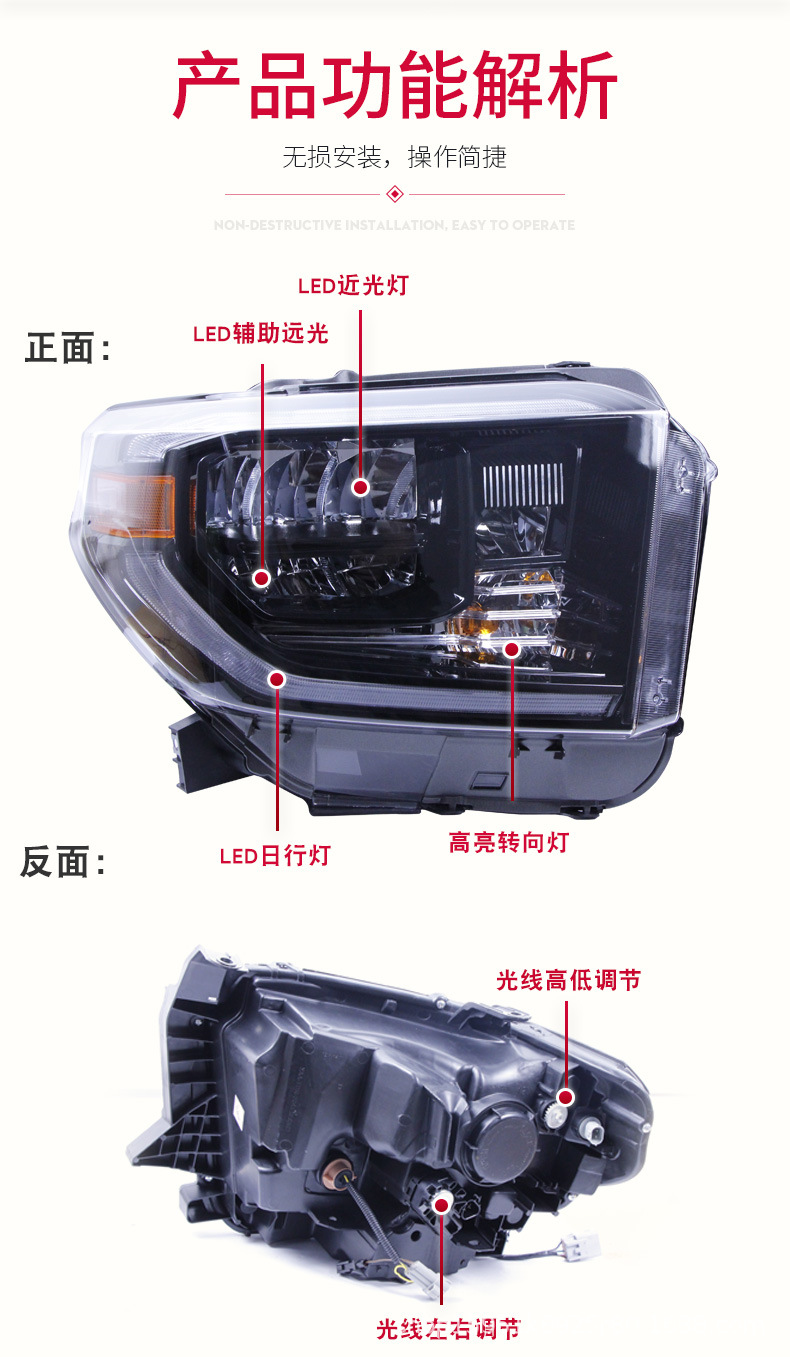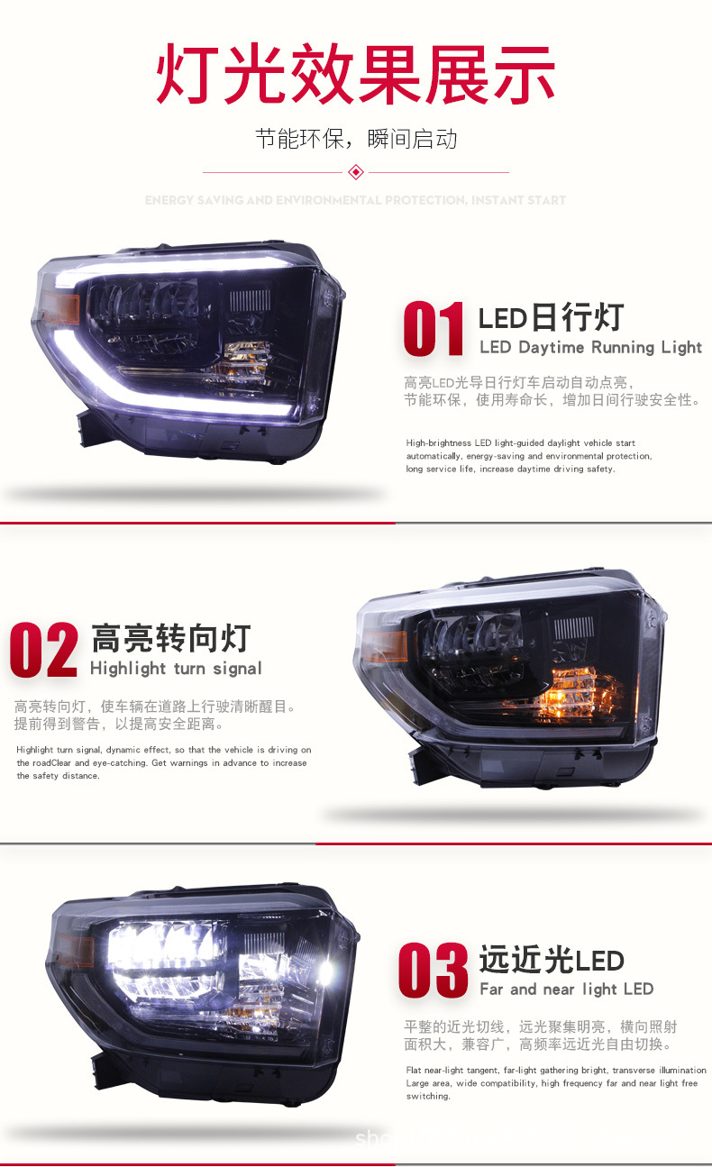 - Stylish Design Upgrade: Integrated daytime running lights (DRL) and dynamic sequential turn signals add a sophisticated and eye-catching look, significantly upgrading your Tundra’s front-end appearance.