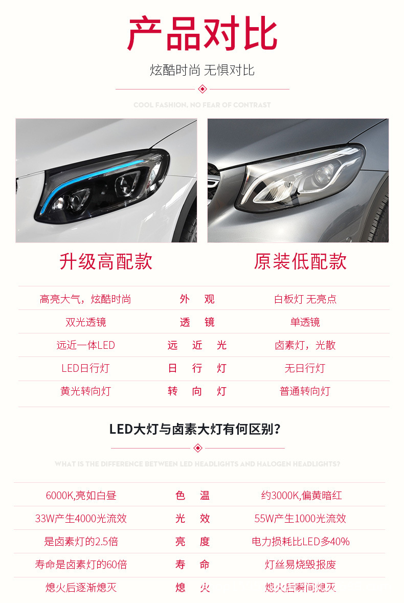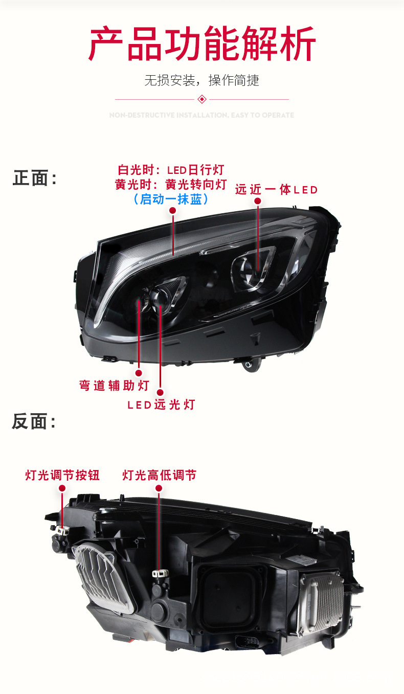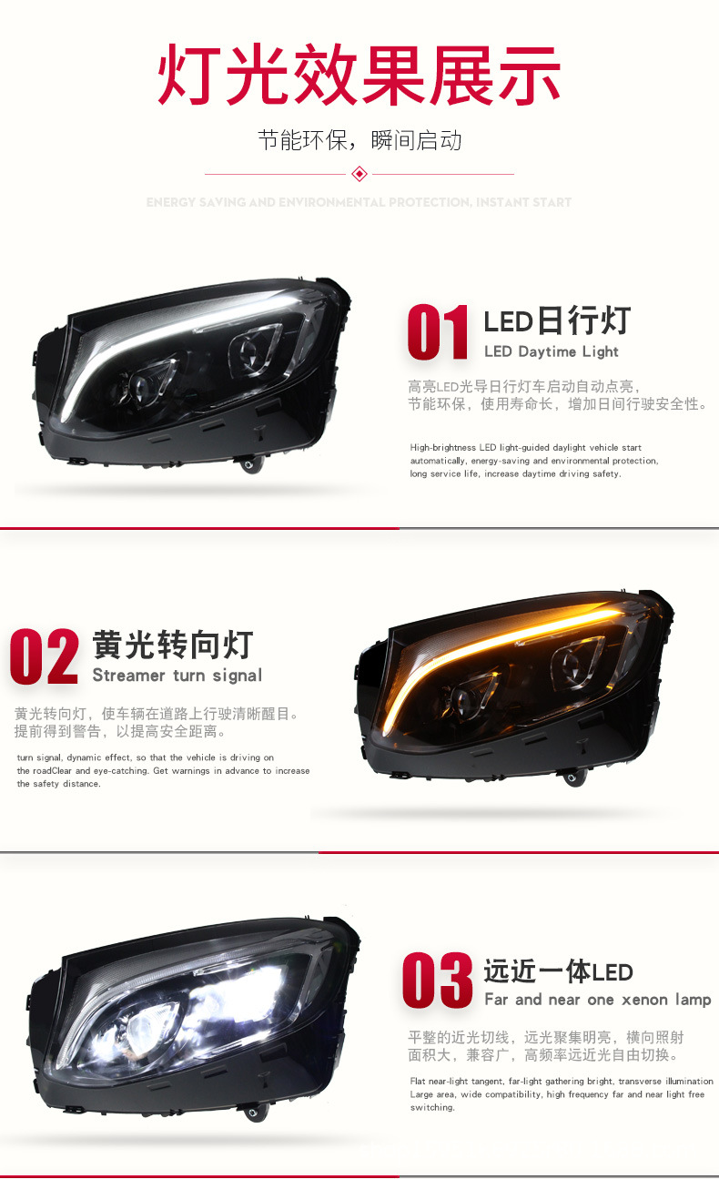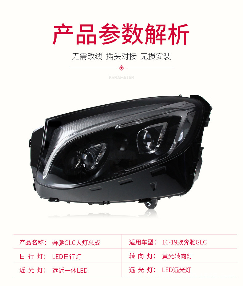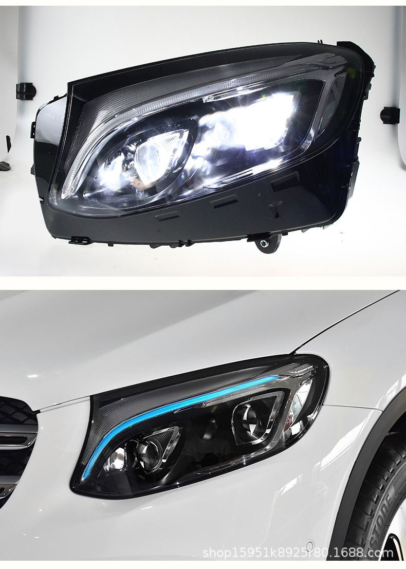 Full LED Headlight Assembly with Daytime Running Lights and Dual Projector Lens for Mercedes-Benz GLC W253 2016-2019