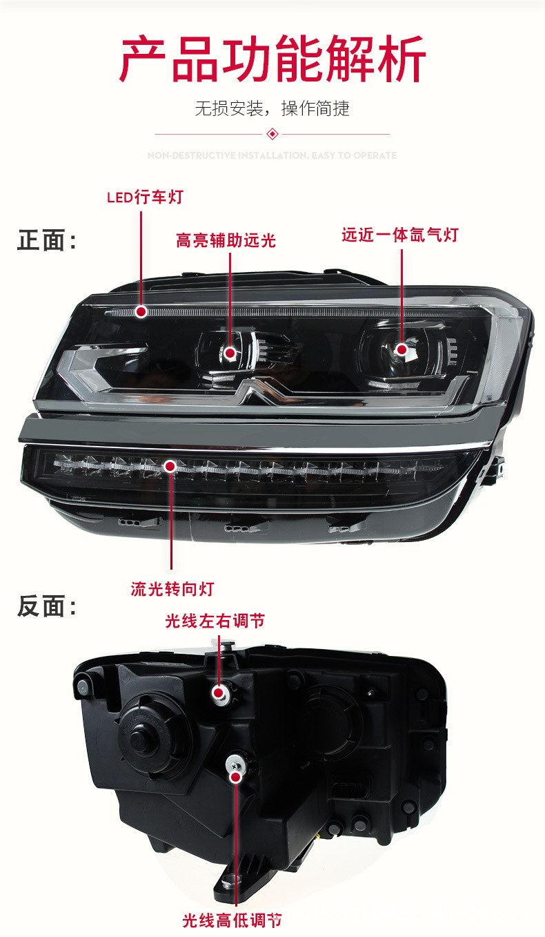 - Precise Fitment: Specifically engineered for 2018-2020 VW Tayron models, ensuring a perfect, direct-fit replacement for your original headlight assembly without modifications.