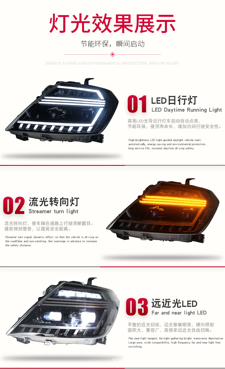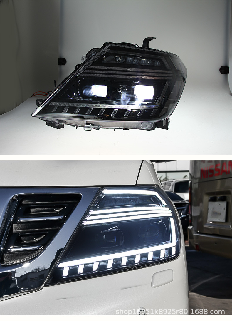 Full LED Headlight Assembly with Daytime Running Lights Sequential Turn Signal LED Projector for Nissan Patrol Y62 (2012-2019)