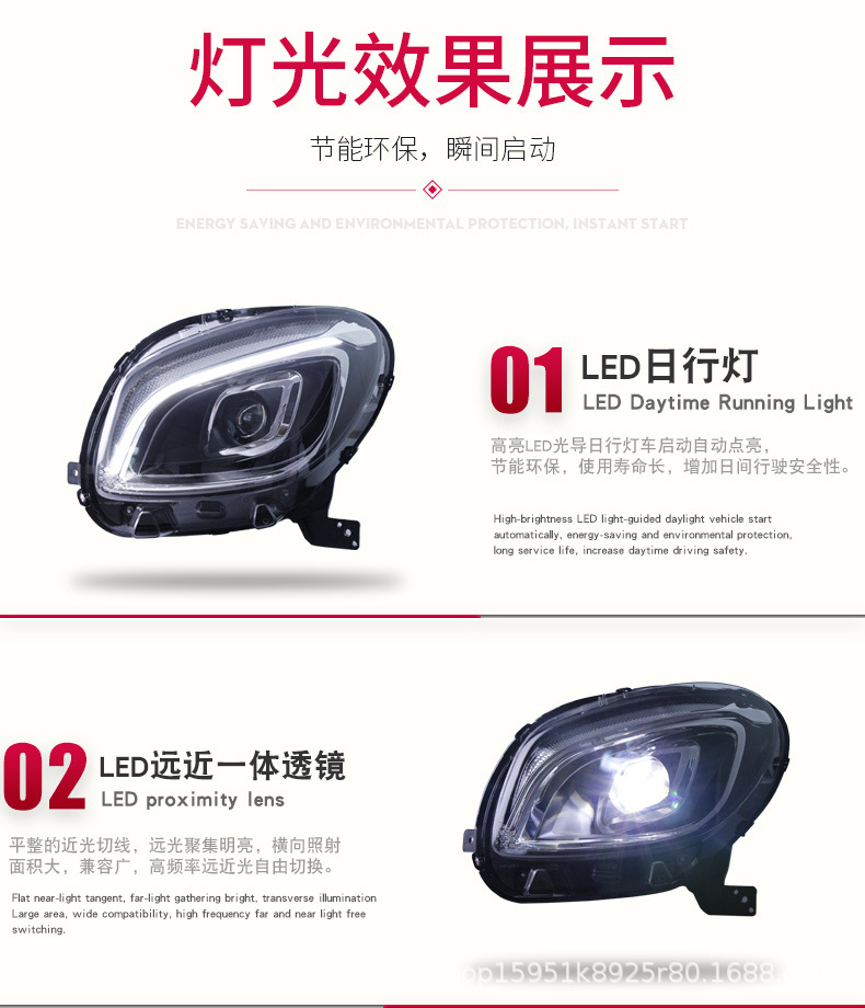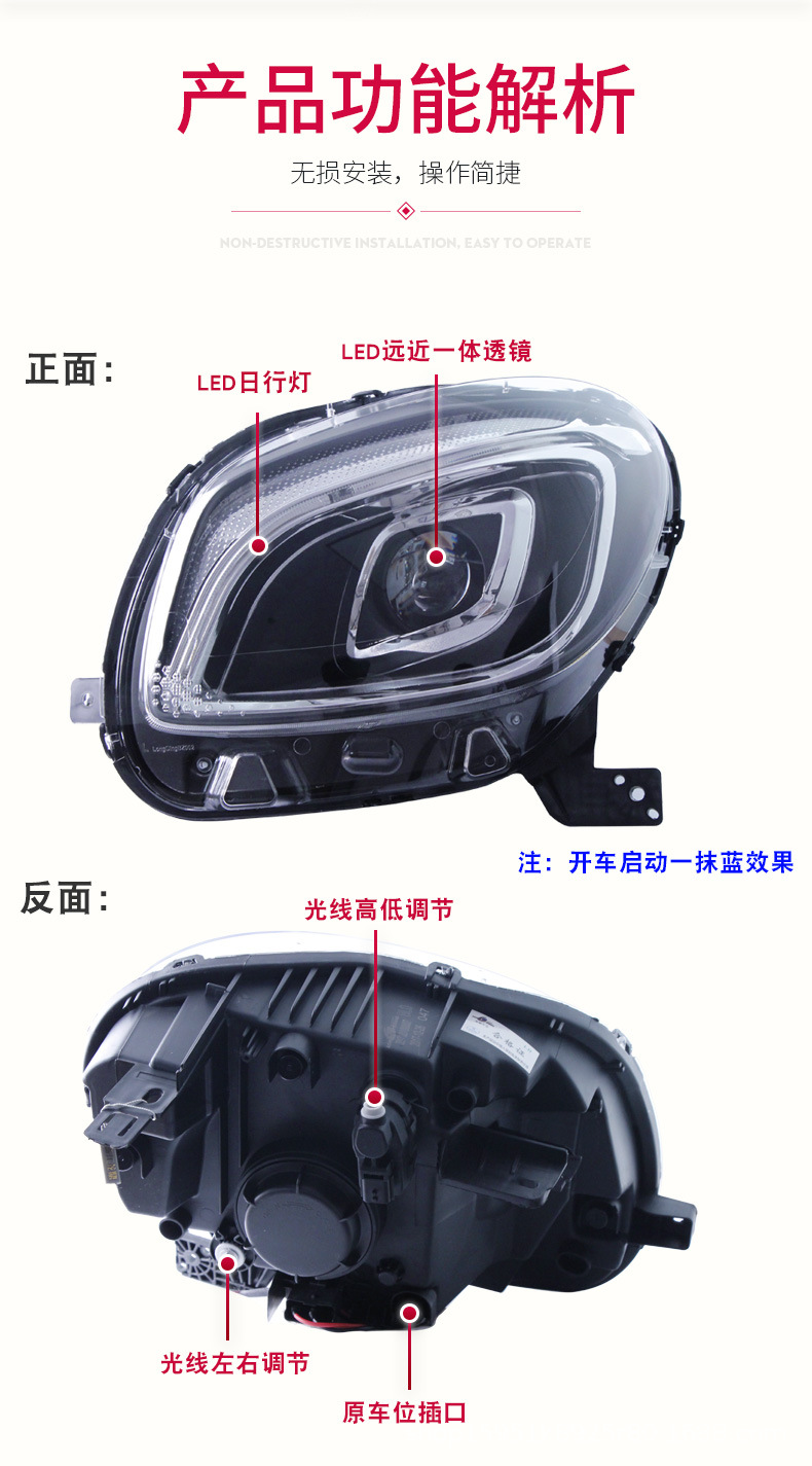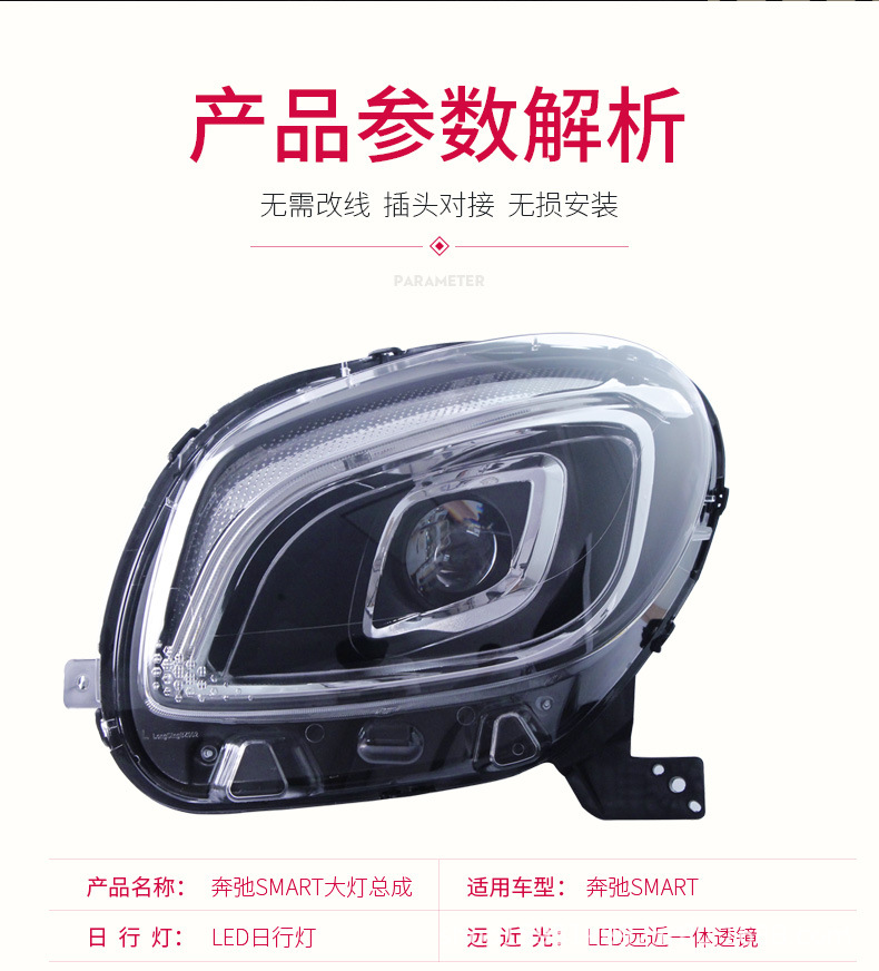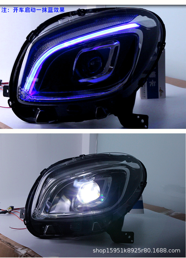 Full LED Headlight Assembly with Daytime Running Light Projector Lens for Smart (2007-2019)