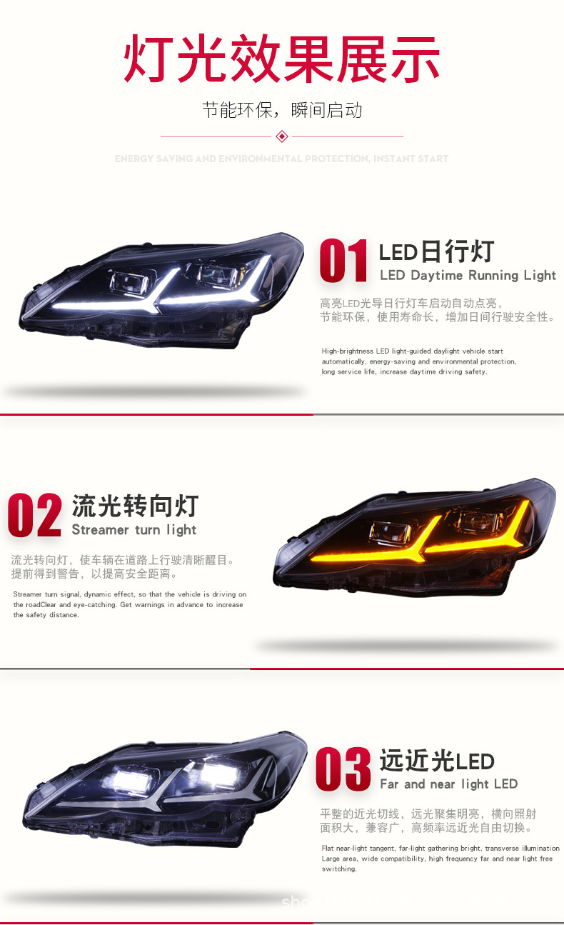 Full LED Headlight Assembly with Daytime Running Light Flowing Turn Signal for Toyota Reiz (2010-2013)