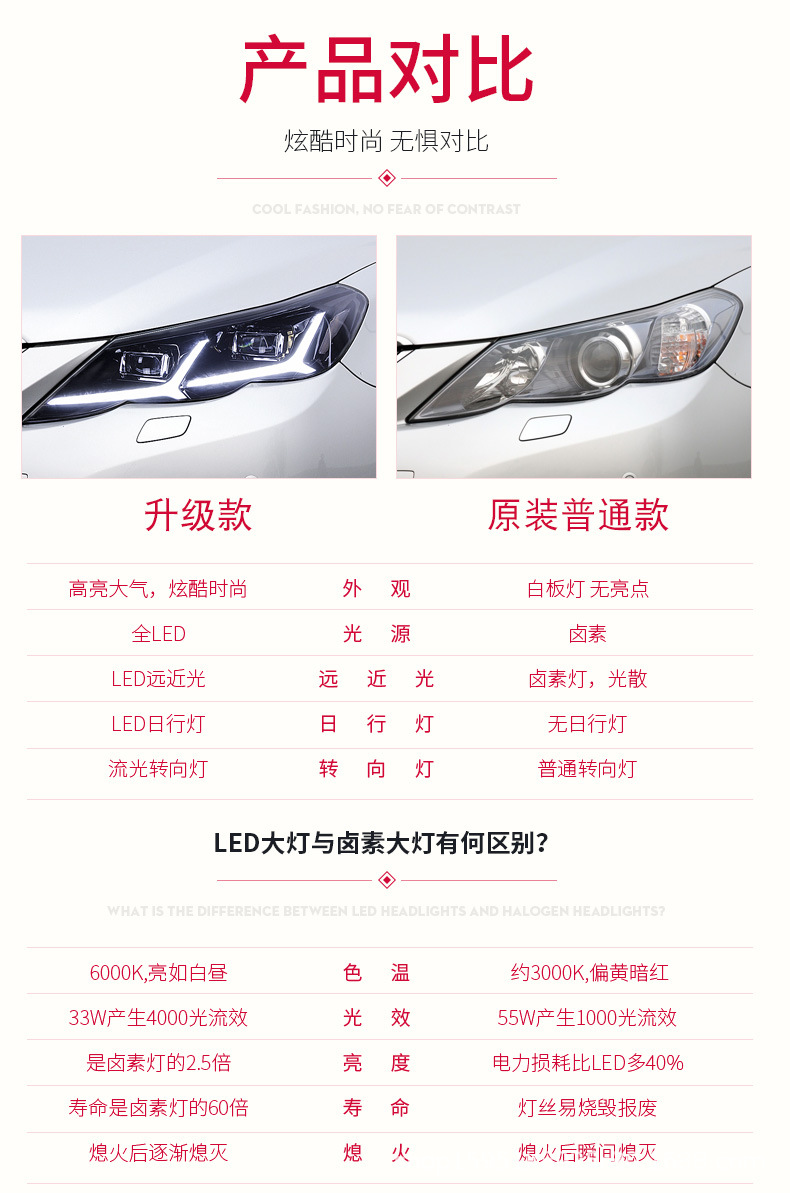 - Enhanced Visibility & Safety: Features an advanced full LED design for superior illumination, including bright LED daytime running lights (DRL) and dynamic flowing turn signals for increased road presence and safety.