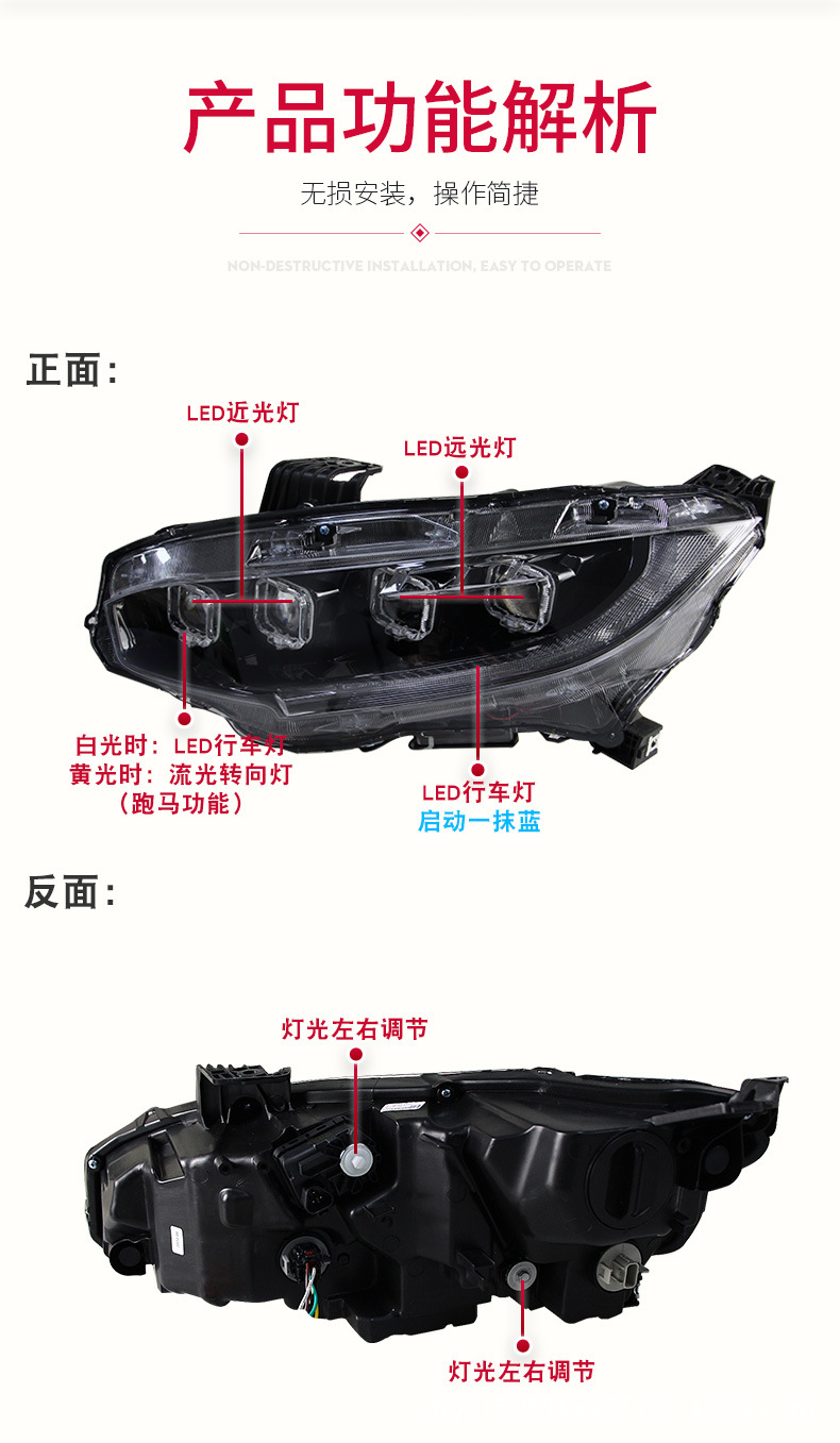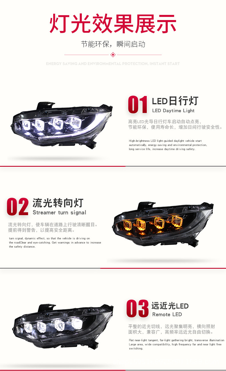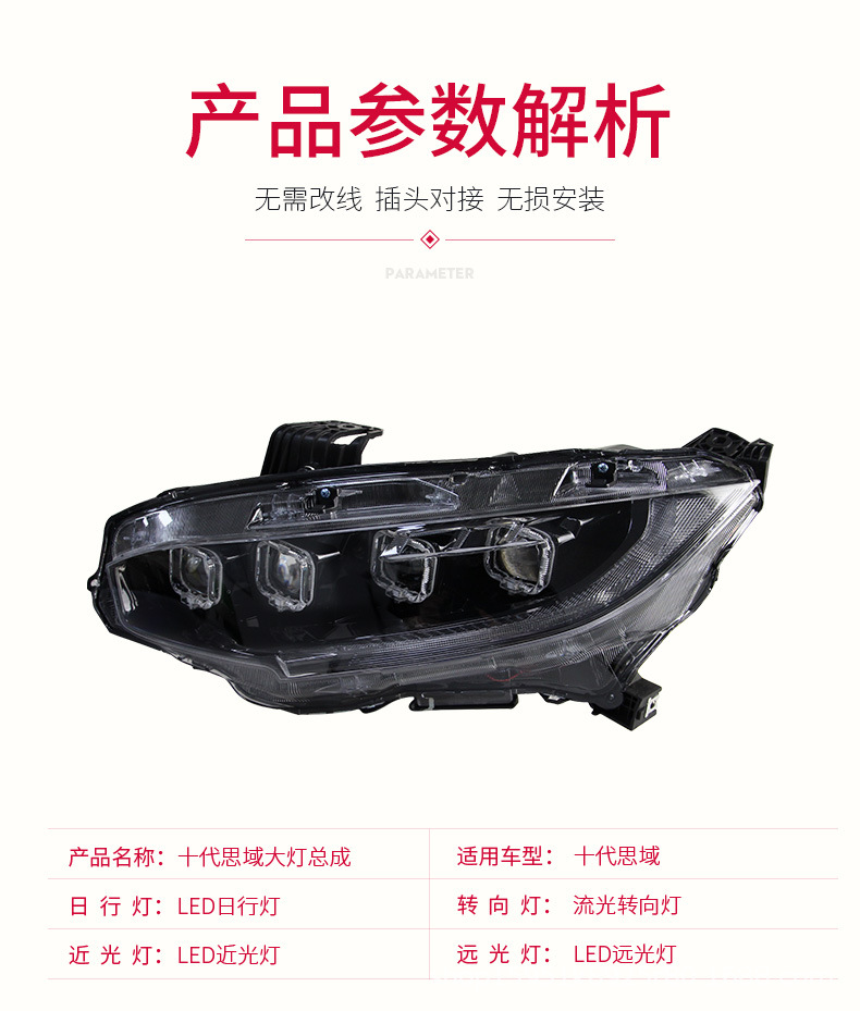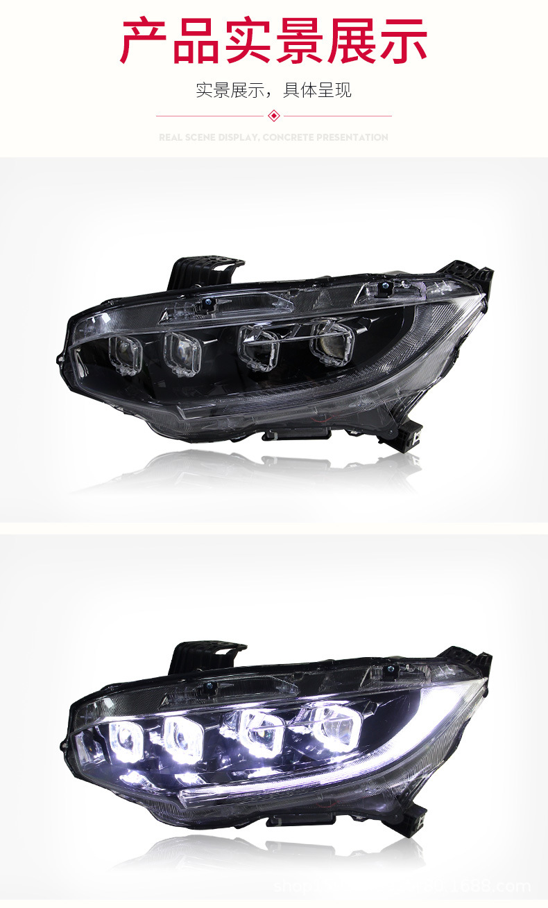 - Precise Fitment: Specifically designed for Honda Civic 10th Generation models, ensuring a perfect, seamless replacement for your original headlight assembly without any modification.
