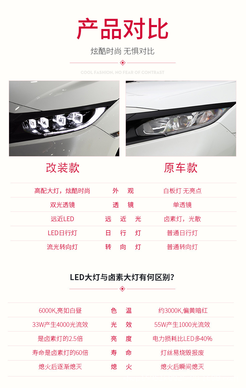 - Dynamic Lighting Design: Elevate your vehicle’s aesthetics with integrated LED daytime running lights (DRL) and stylish sequential turn signals, providing a modern and distinctive look.