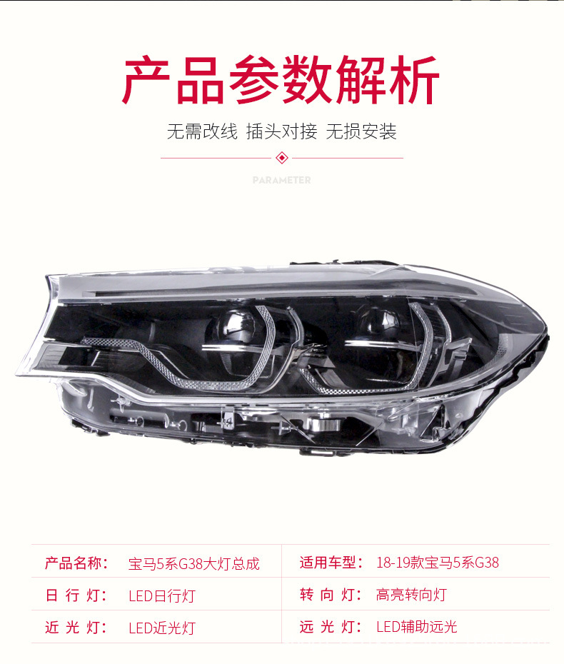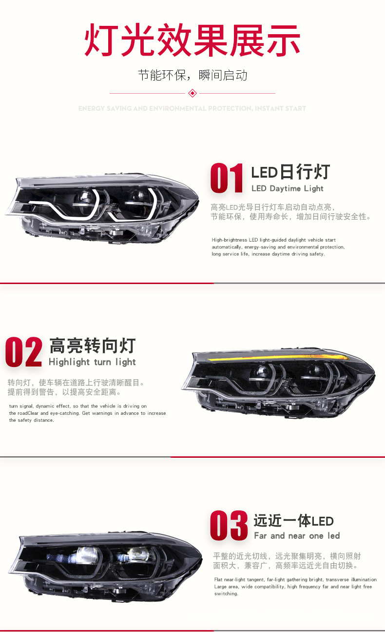 Full LED Headlight Assembly with Daytime Running Light for BMW 5 Series G38 (2018-2020)