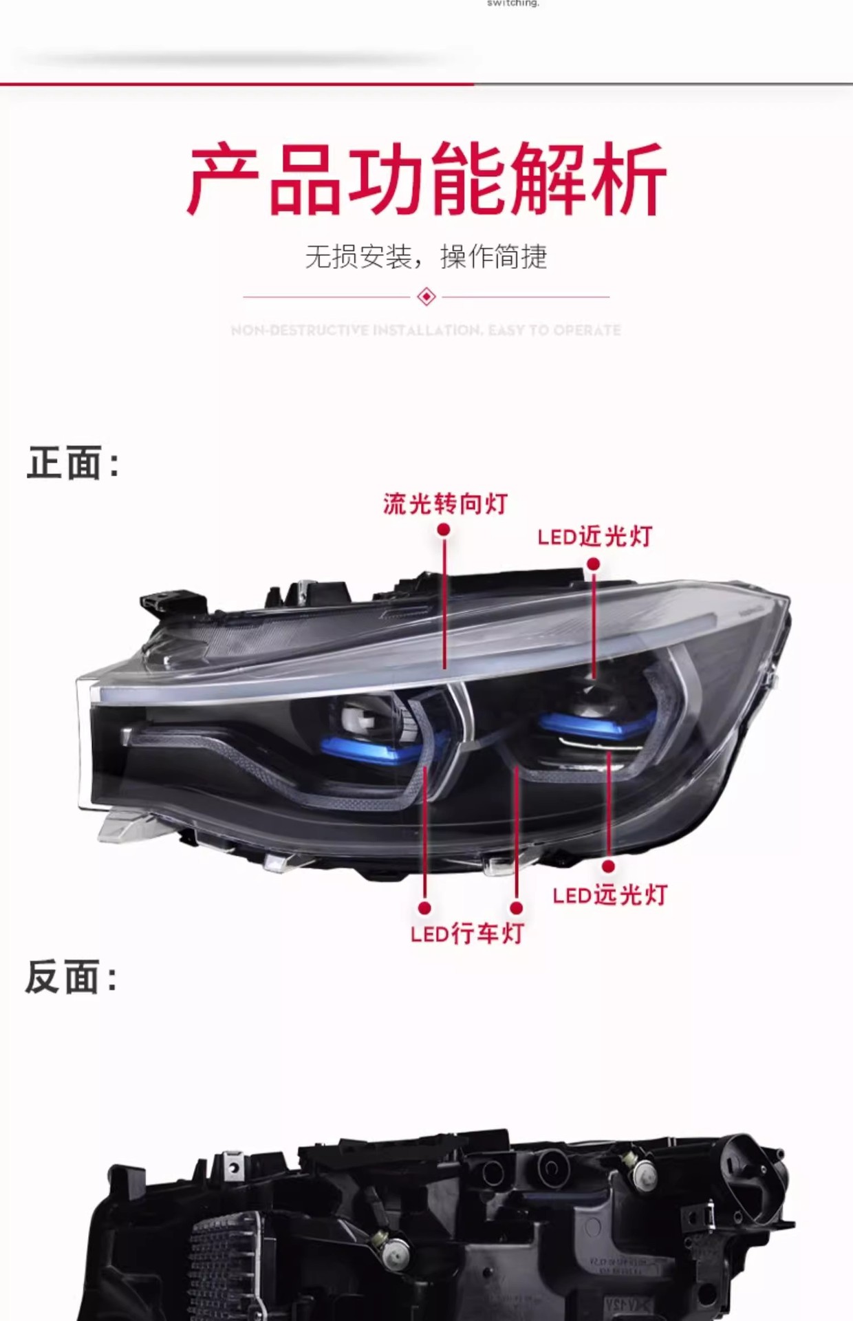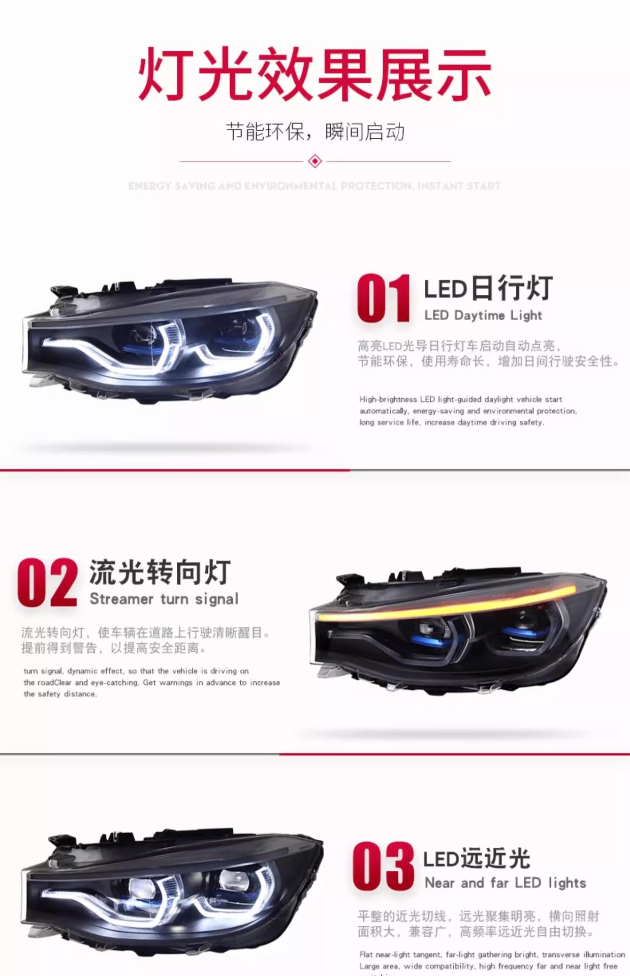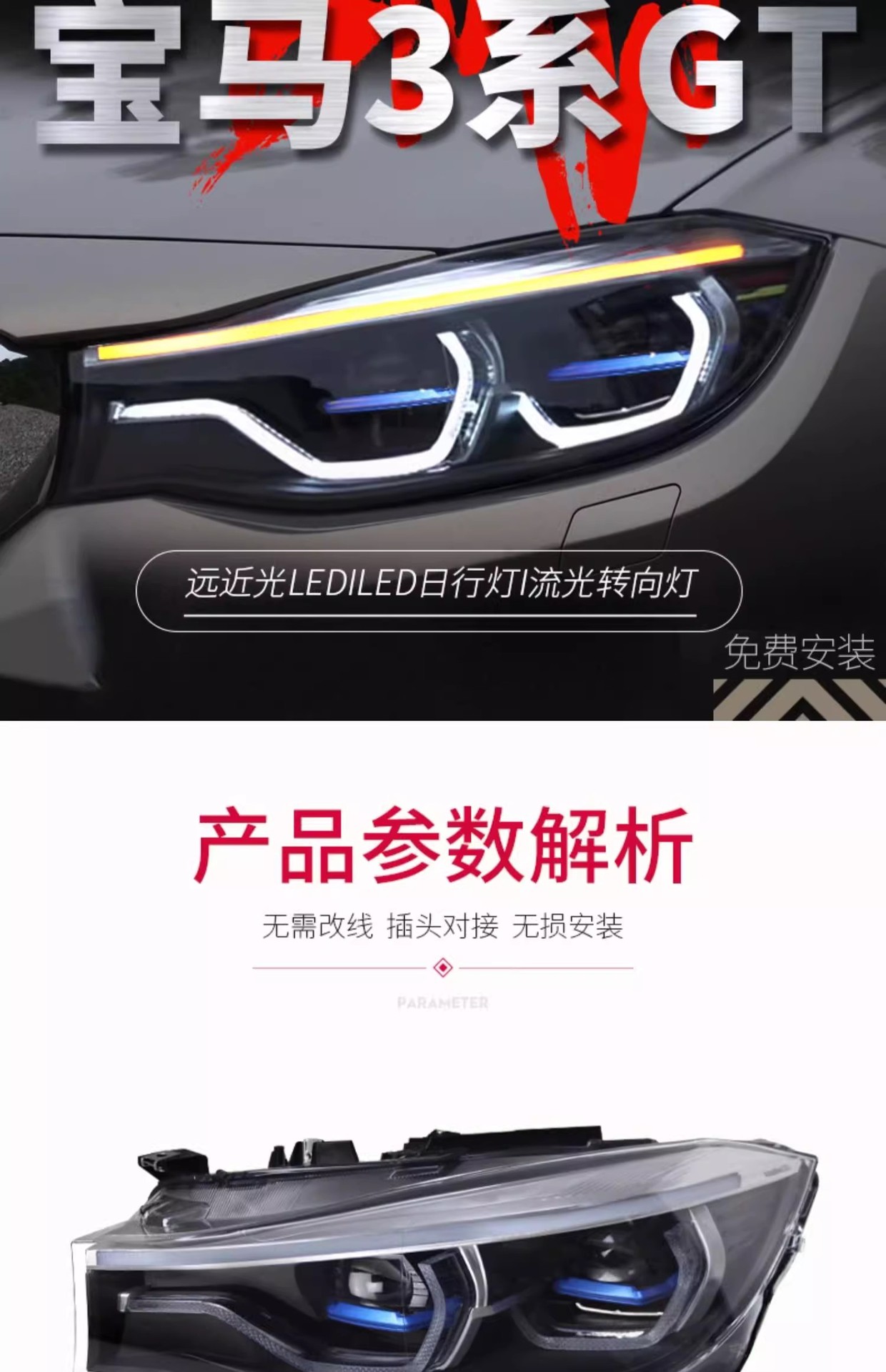 Full LED Headlight Assembly with Daytime Running Light Flowing Turn Signal for BMW 3 Series GT F34 (2013-2019)