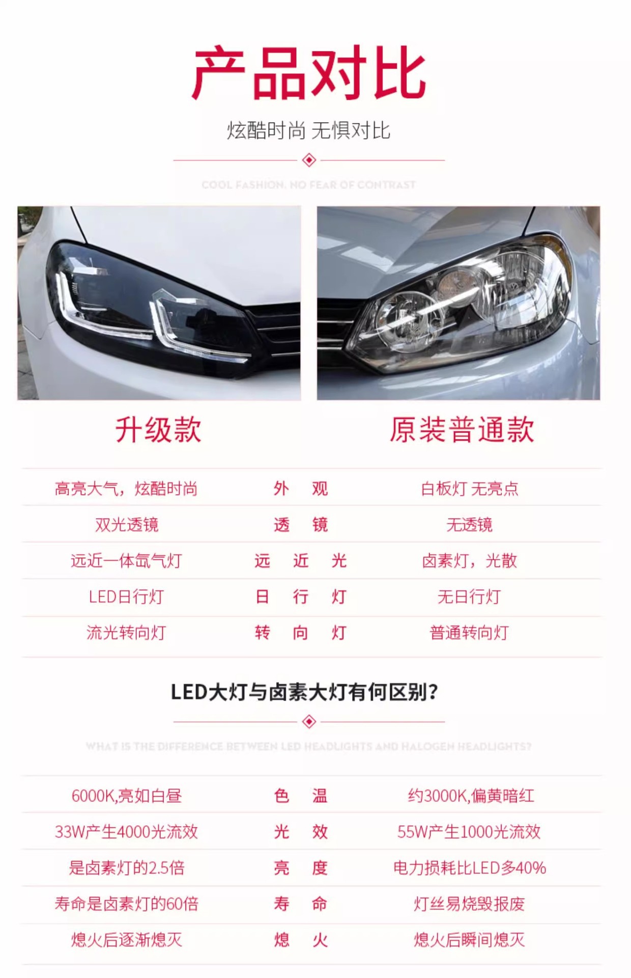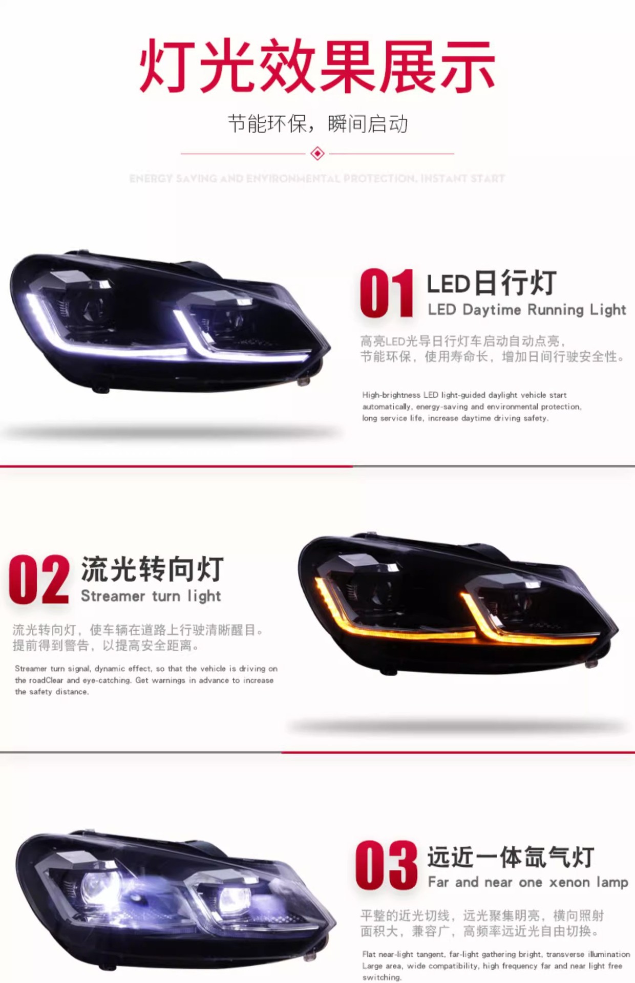 - Enhanced Aesthetics & Styling: Upgrade your car with a sleek, contemporary look inspired by Golf 7.5 style. The integrated projector lens and Xenon lamp deliver a sharp, focused beam pattern and a sophisticated appearance.
