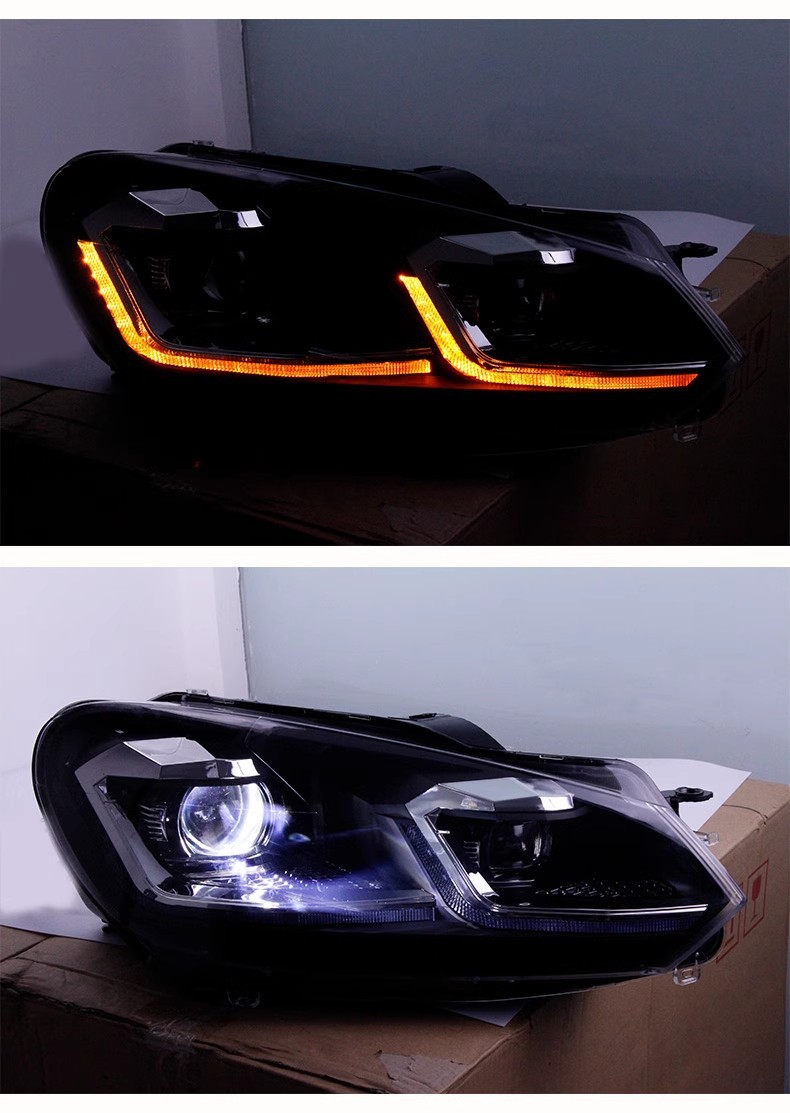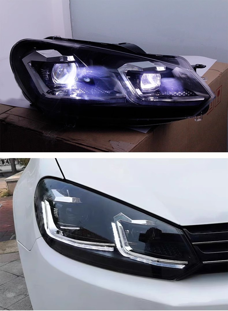 Full LED Headlight Assembly with Daytime Running Lights Flowing Turn Signal Projector Xenon Lamp for Golf 6