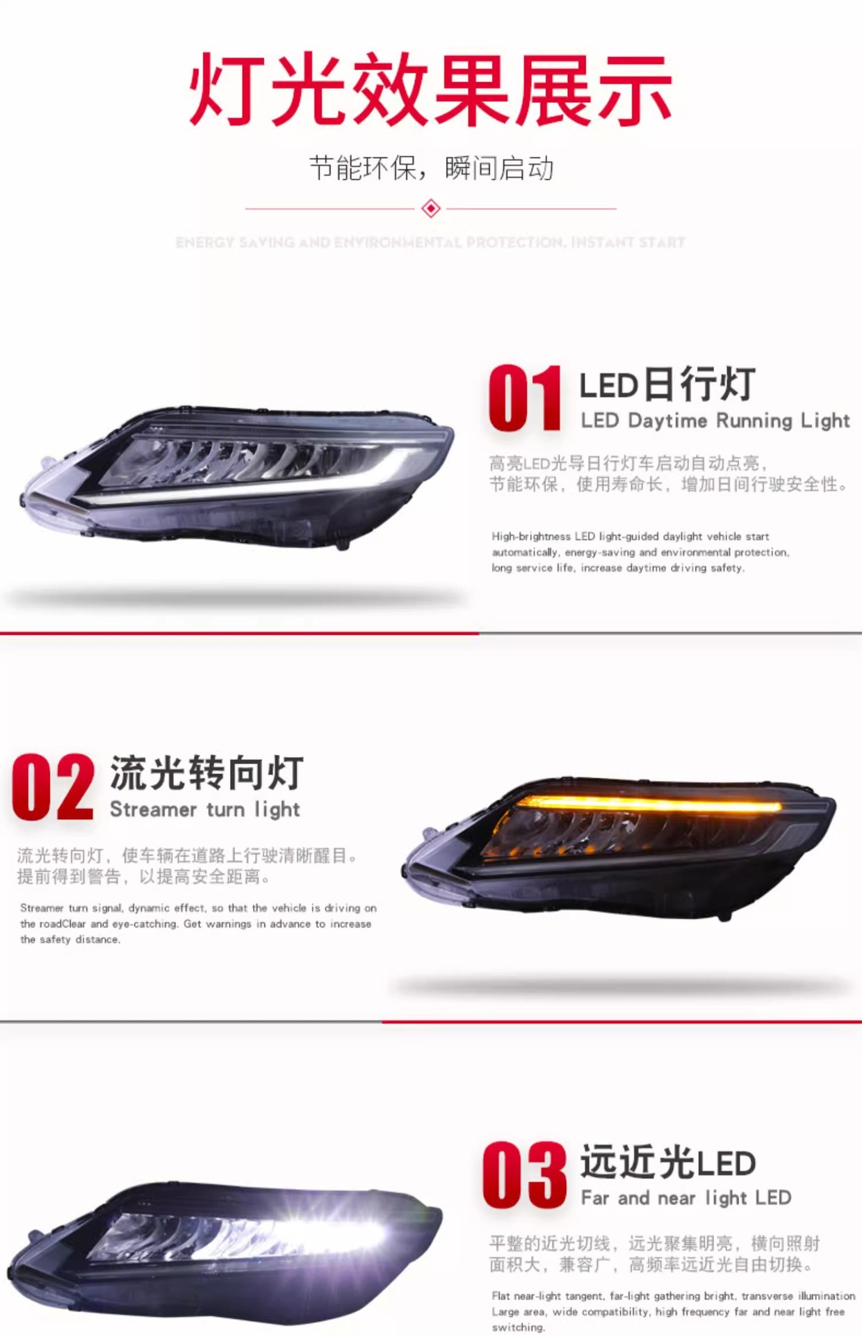 Full LED Headlight Assembly with Daytime Running Light & Turn Signal for Honda Jade 2013-2019