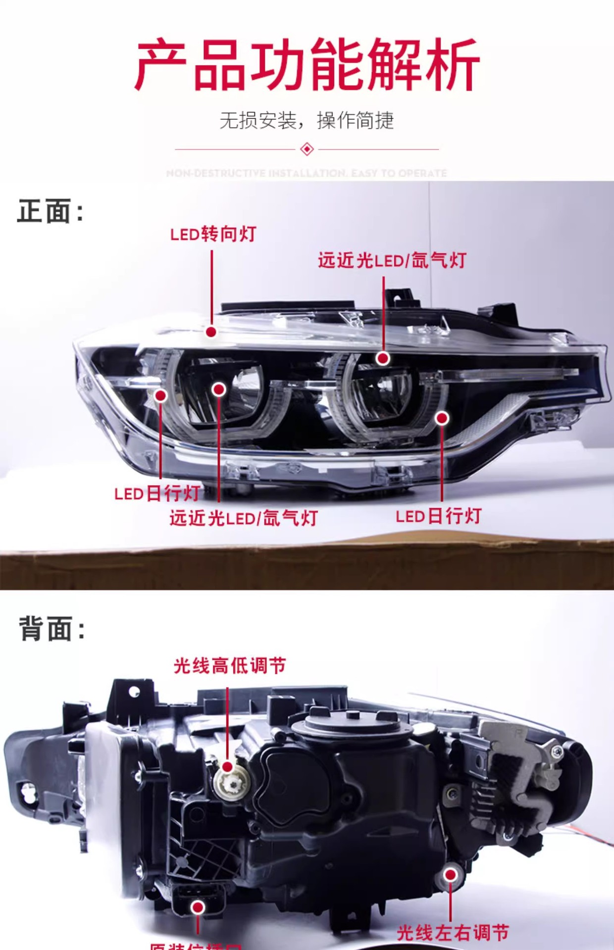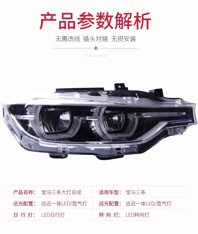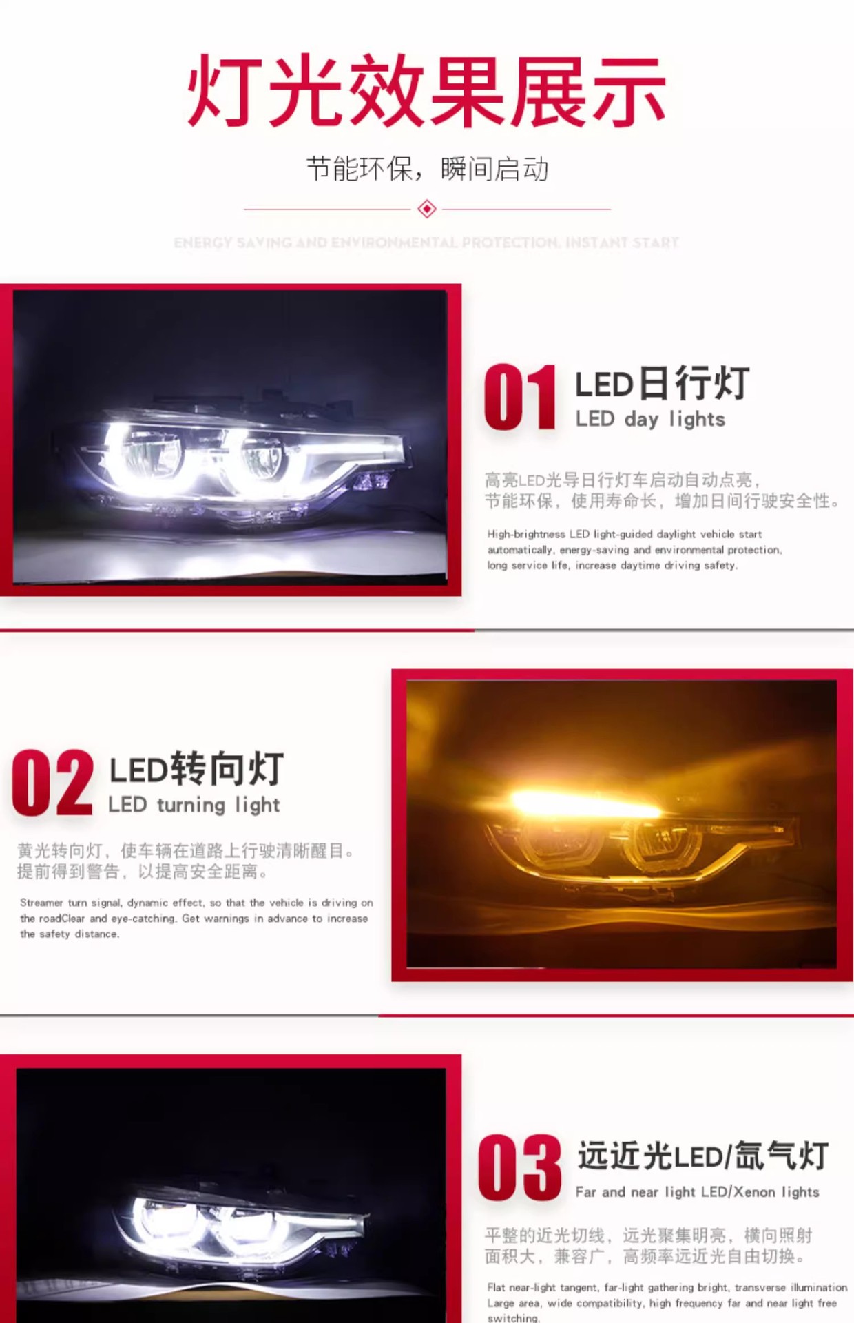 Full LED Headlight Assembly with Daytime Running Lights for BMW 3 Series F30 F35 (2013-2015)