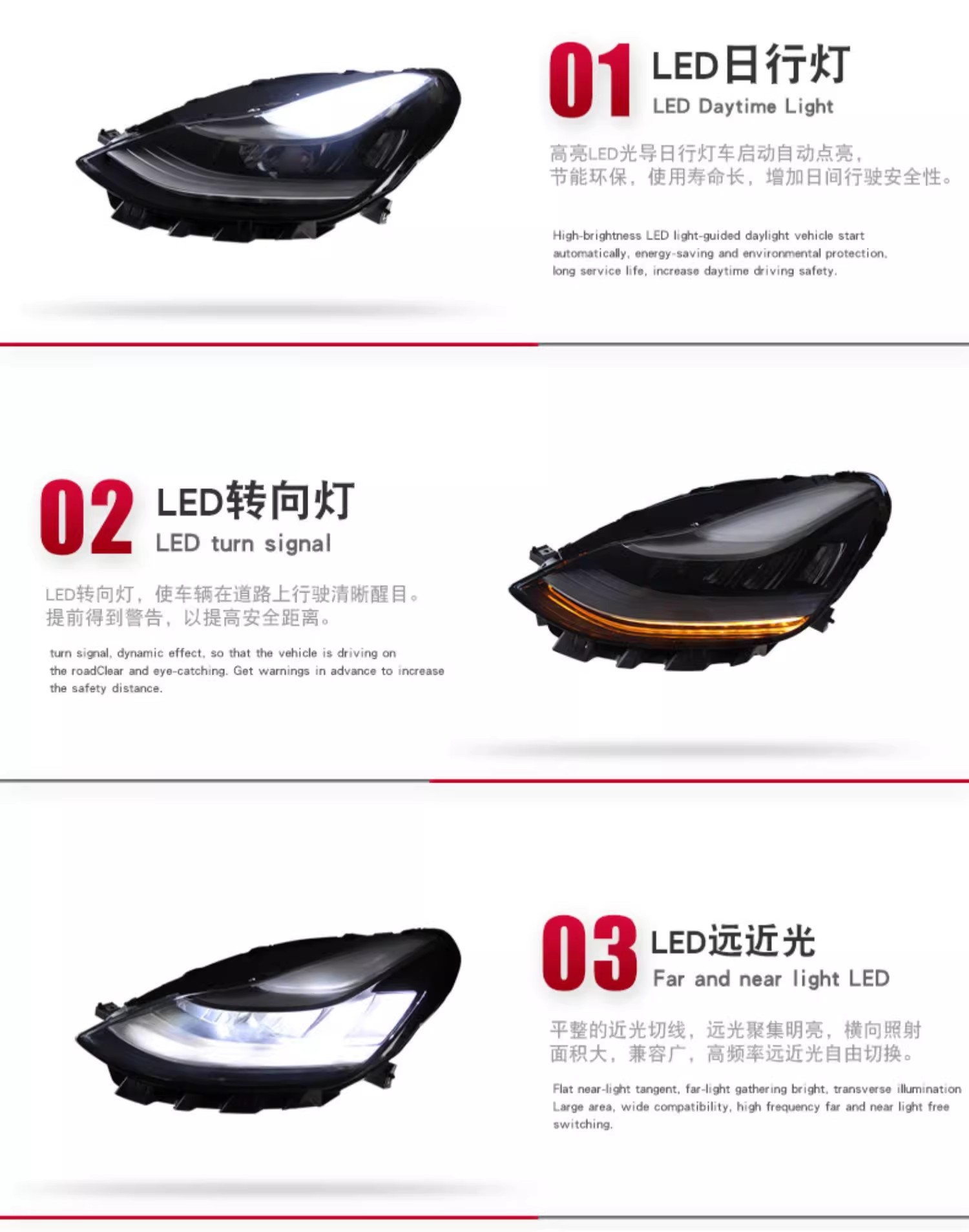 - Enhanced Aesthetics: Features a modern full LED design with captivating flowing turn signals and bright LED daytime running lights, significantly upgrading your car’s visual appeal.