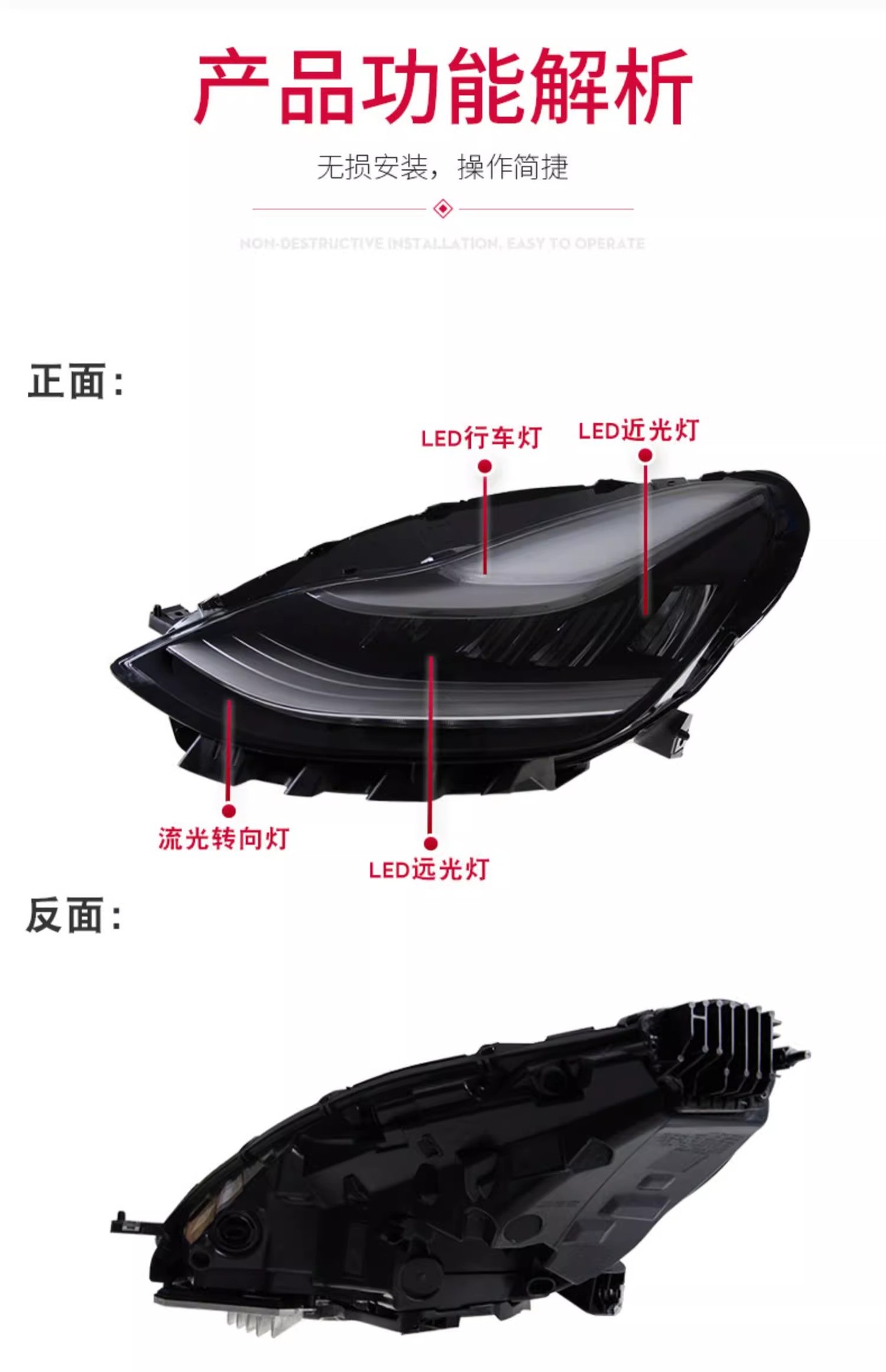 Full LED Headlight Assembly with Flowing Turn Signal DRL for Tesla Model 3 Model Y