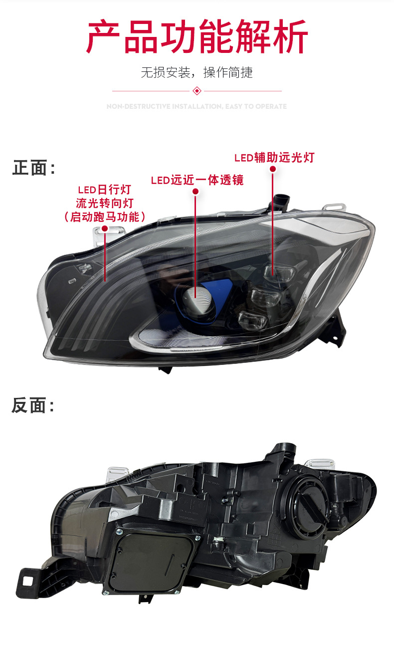 - Enhanced Aesthetics: Upgrade your vehicle’s look with integrated LED Daytime Running Lights (DRL) and dynamic flowing turn signals, providing a modern and distinctive appearance.