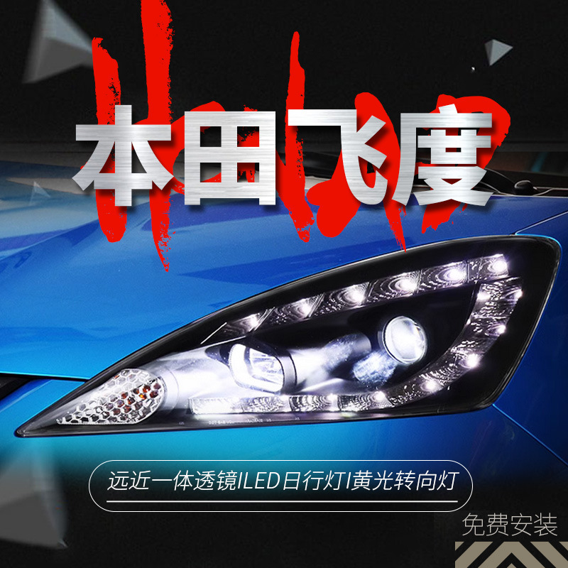Full LED Headlight Assembly with LED Laser Projector Daytime Running Lights Turn Signals for Honda Fit 2008-2010