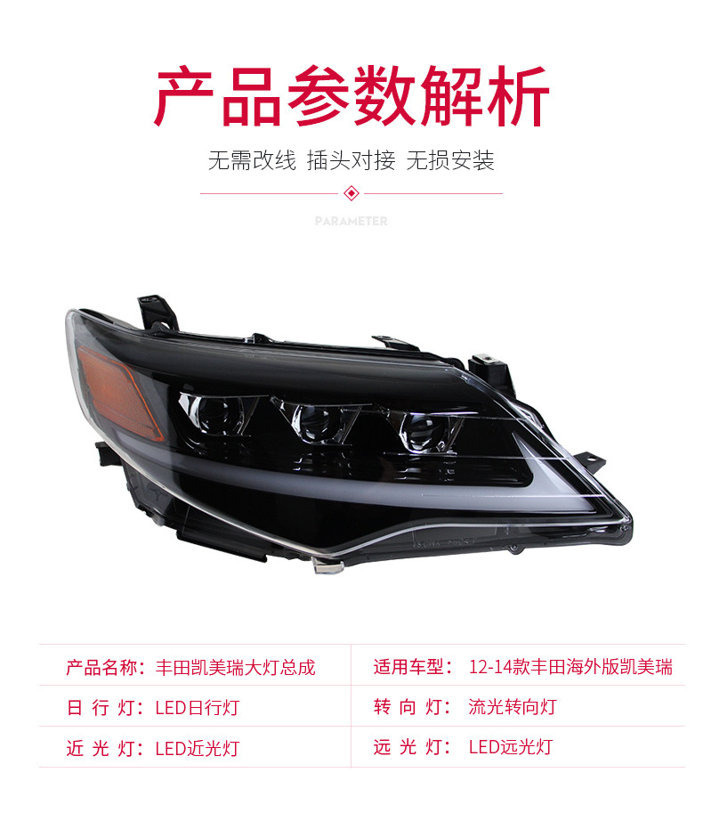 Full LED Headlight Assembly with LED DRL Flowing Turn Signal for Toyota Camry US Version (2012-2014) Headlight