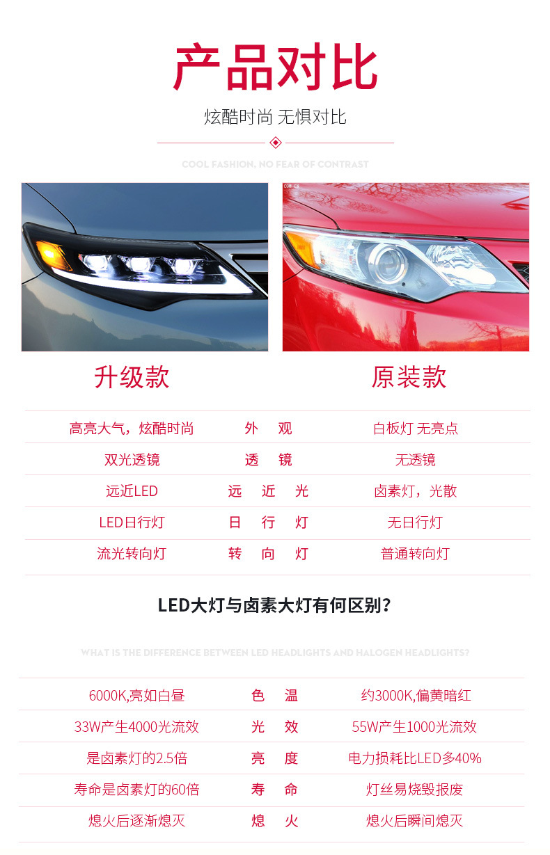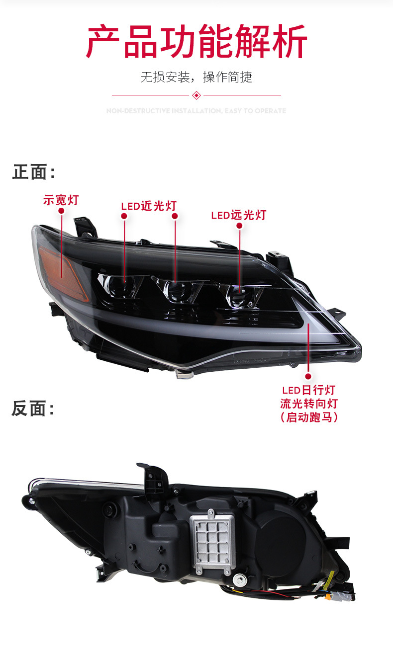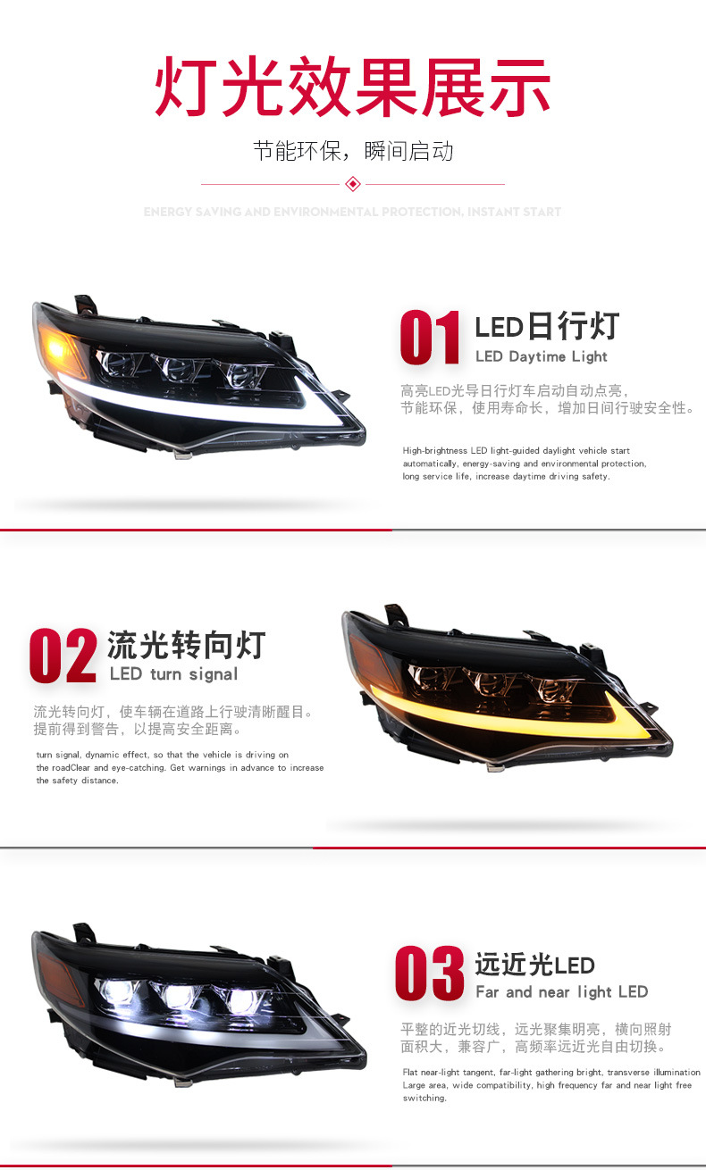 - Enhanced Visuals & Safety: Features bright LED Daytime Running Lights (DRL) and dynamic flowing turn signals, significantly improving vehicle visibility and giving your Camry a modern, aggressive aesthetic.