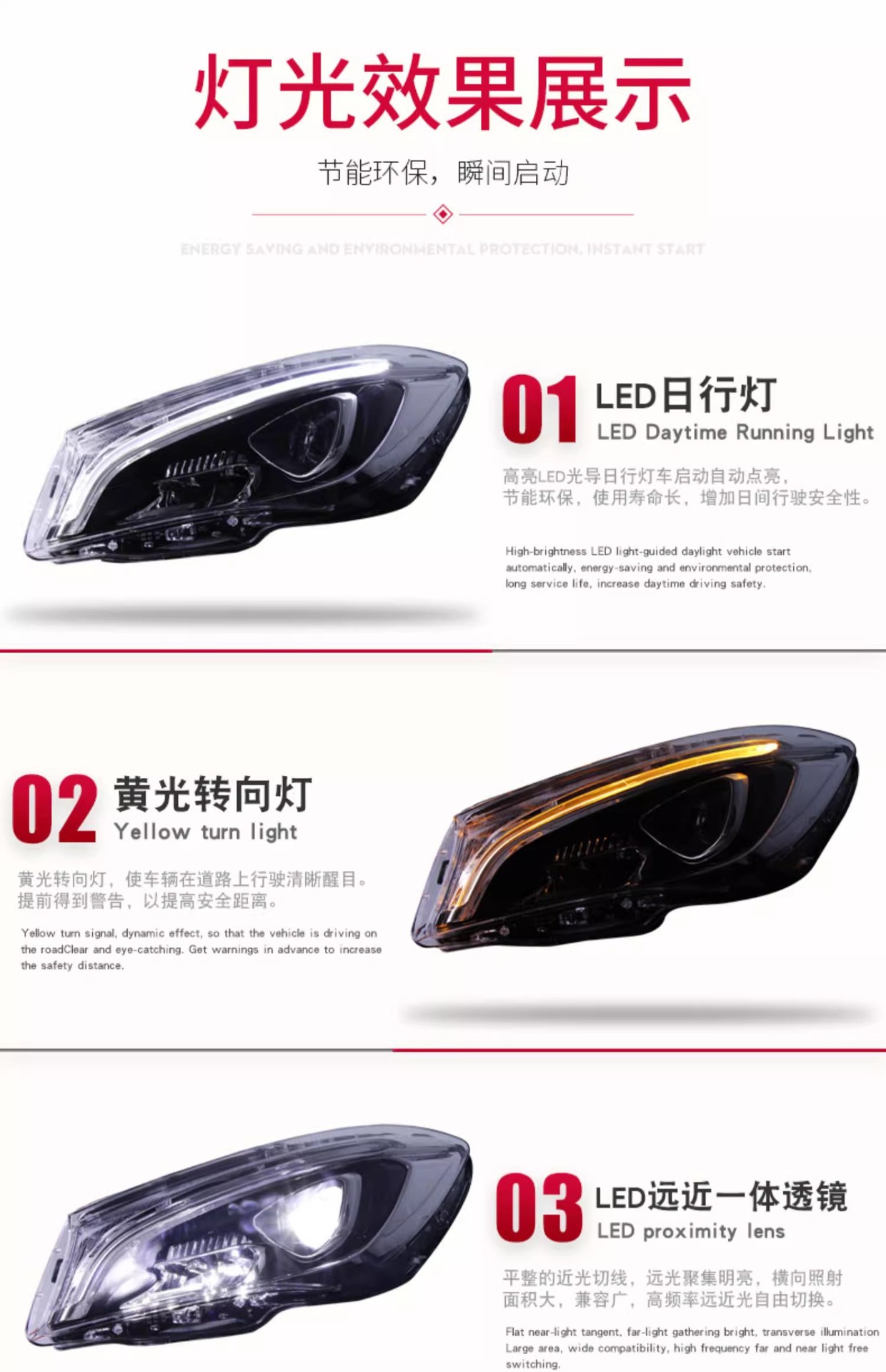 - Enhanced Visual Appeal: Upgrade your vehicle’s aesthetics with a modern full LED design, integrated LED Daytime Running Lights (DRL), and dynamic turn signals for a sleek, contemporary look.