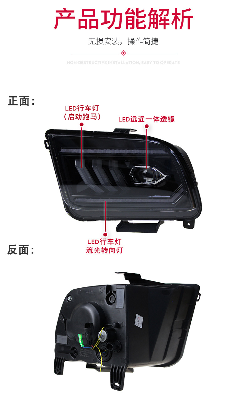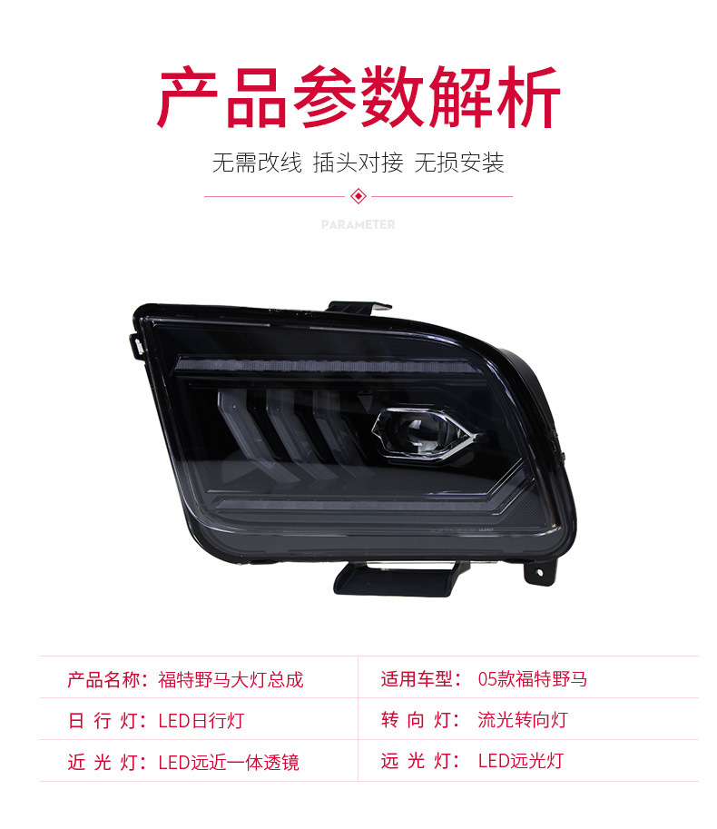 - Precise Fitment: Specifically designed for 2005 2006 2007 2008 2009 Ford Mustang models, ensuring a perfect, direct-fit replacement for your original headlights.