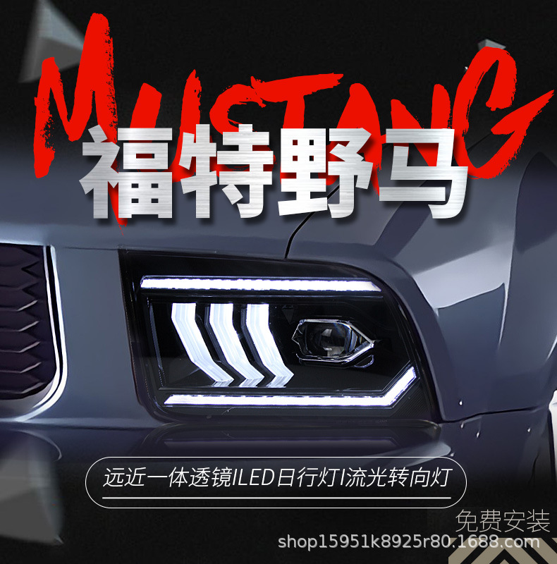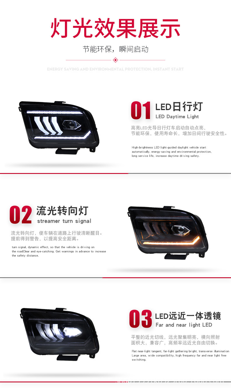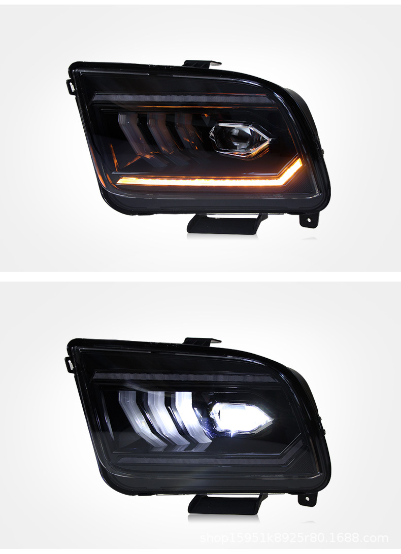 Full LED Headlight Assembly with LED DRL Projector Sequential Turn Signal for Ford Mustang (2005-2009)