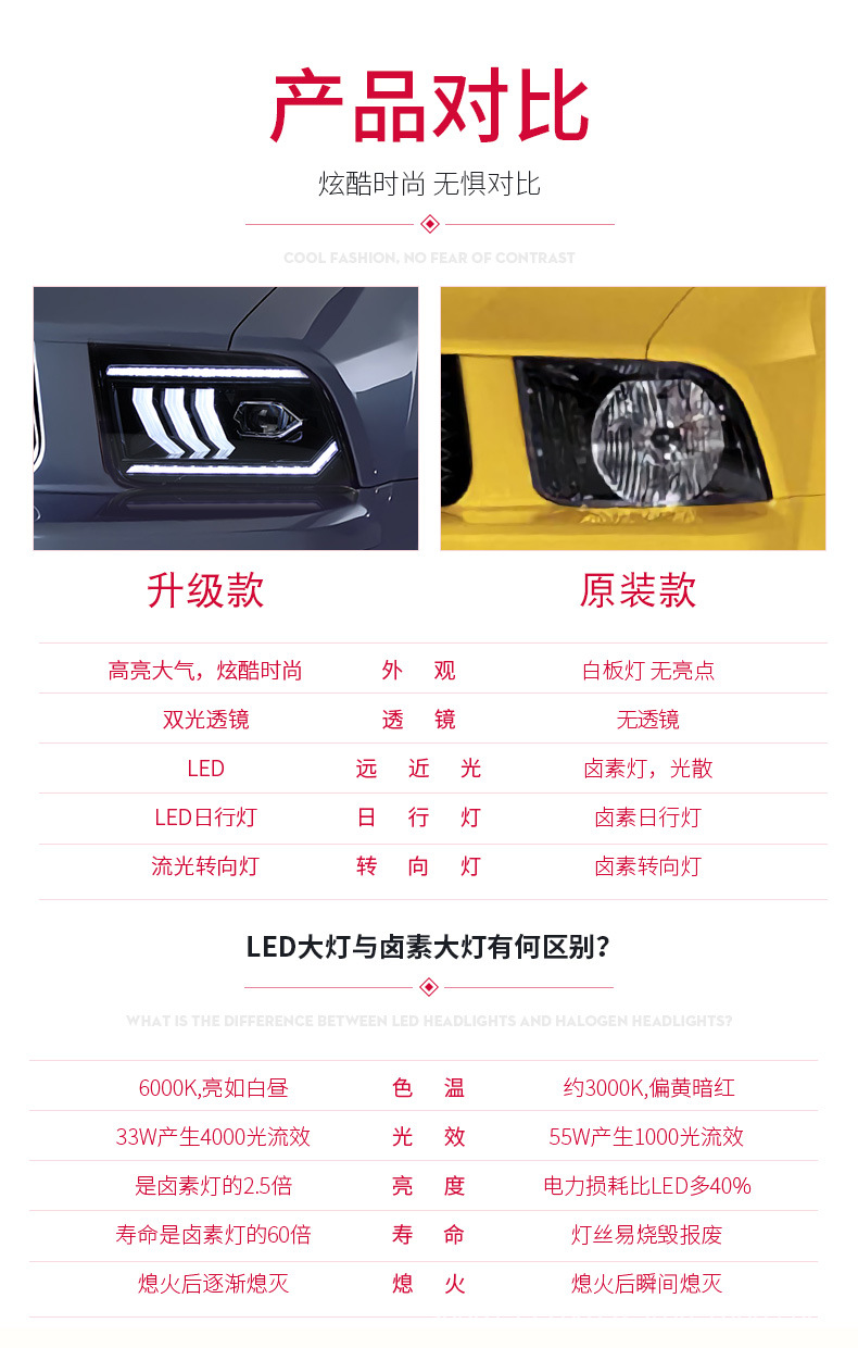 - Dynamic Sequential Turn Signals: Incorporates a distinctive sequential amber LED turn signal, providing increased safety and a high-end, customizable look to your vehicle.