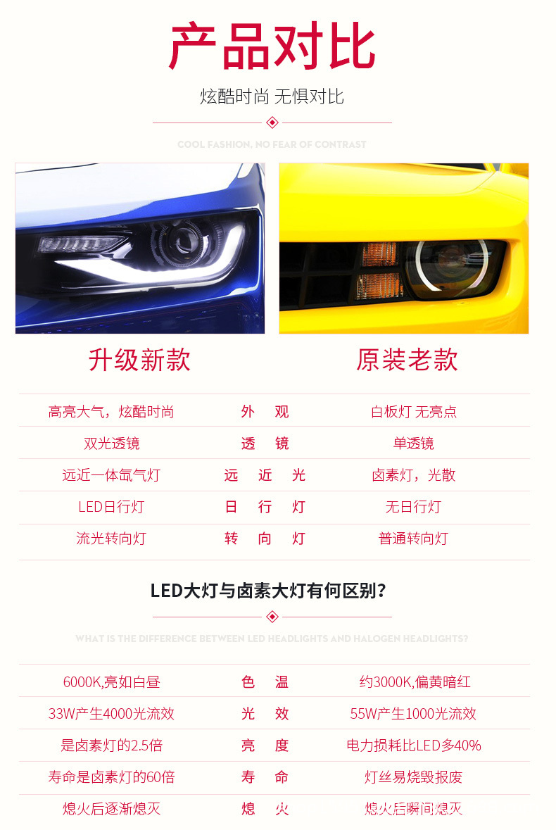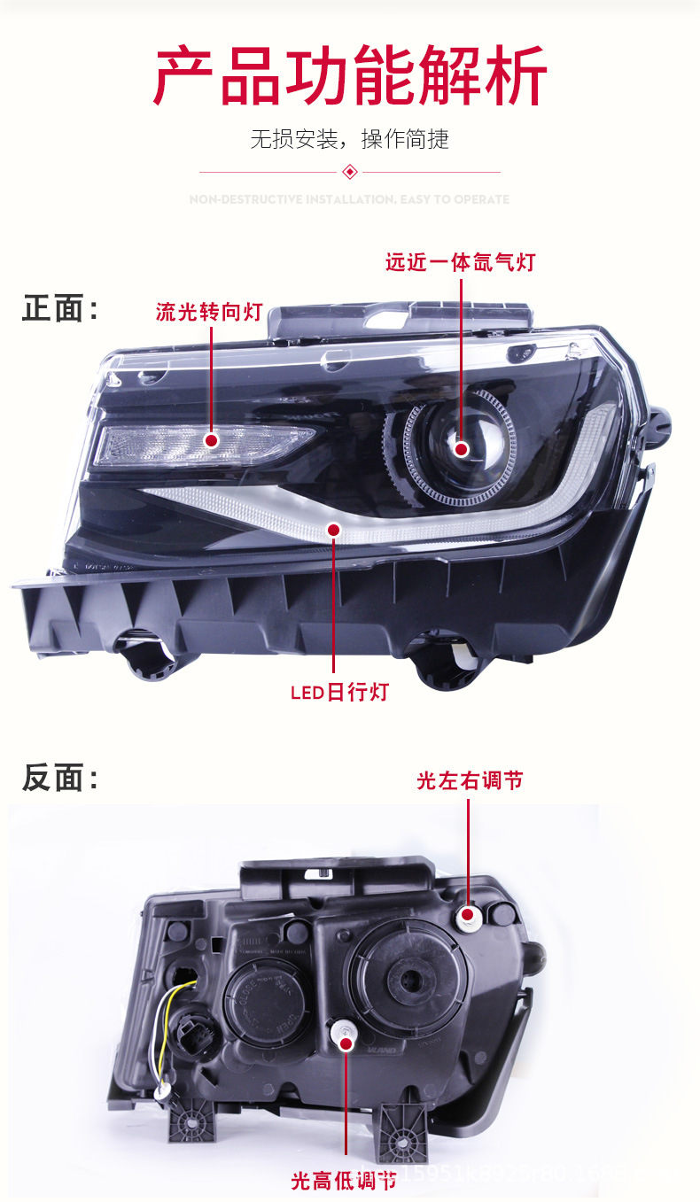 - Modern Design & Style: Upgrade your Camaro’s aesthetics with a sleek, modern headlight assembly featuring integrated LED daytime running lights (DRL) for enhanced visibility and a distinctive look. Enhances the overall aggressive styling.