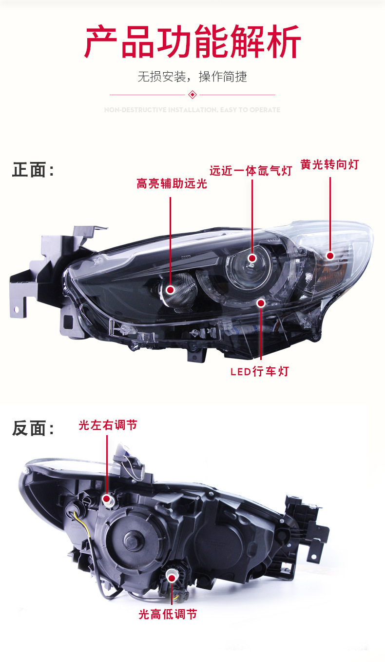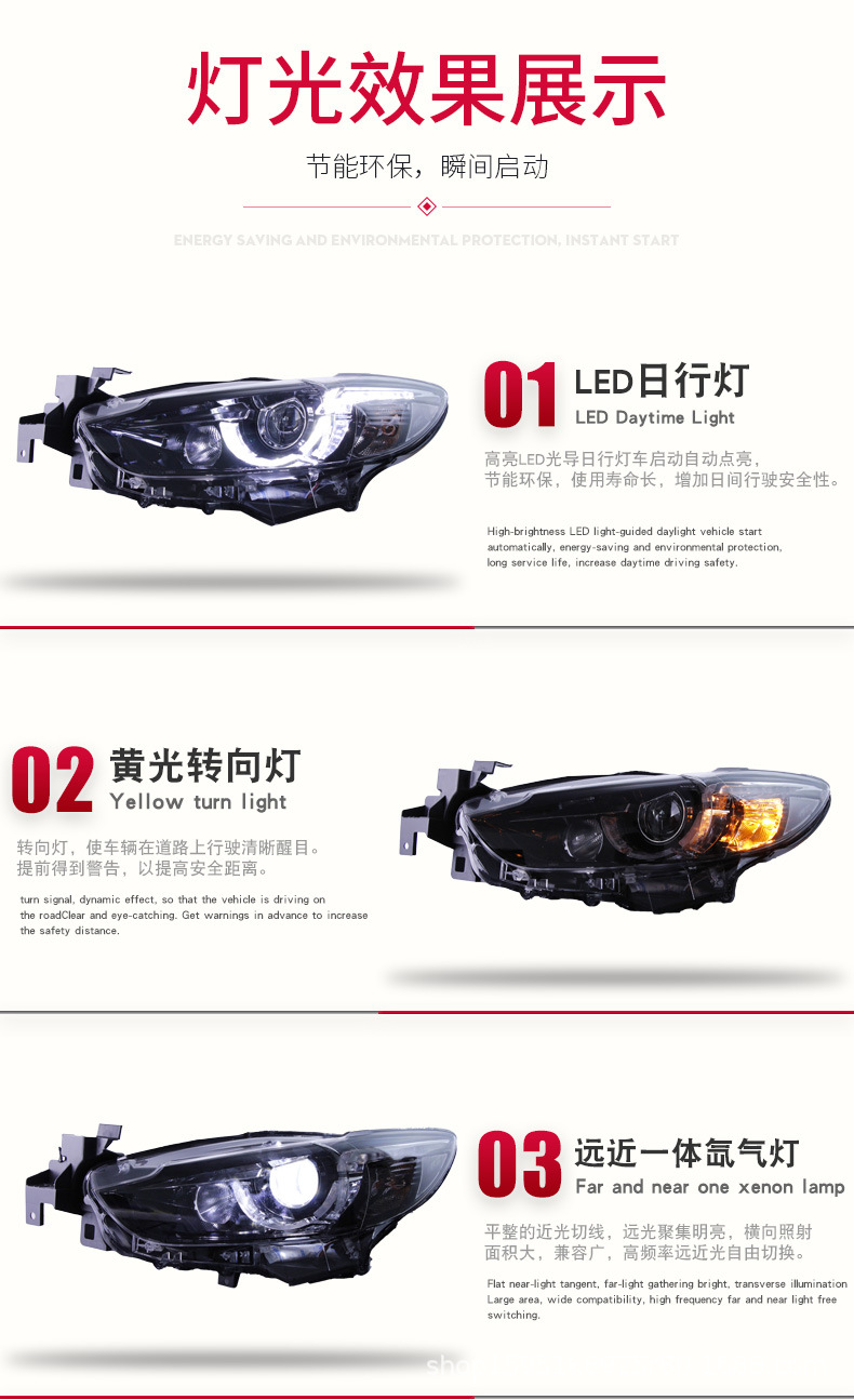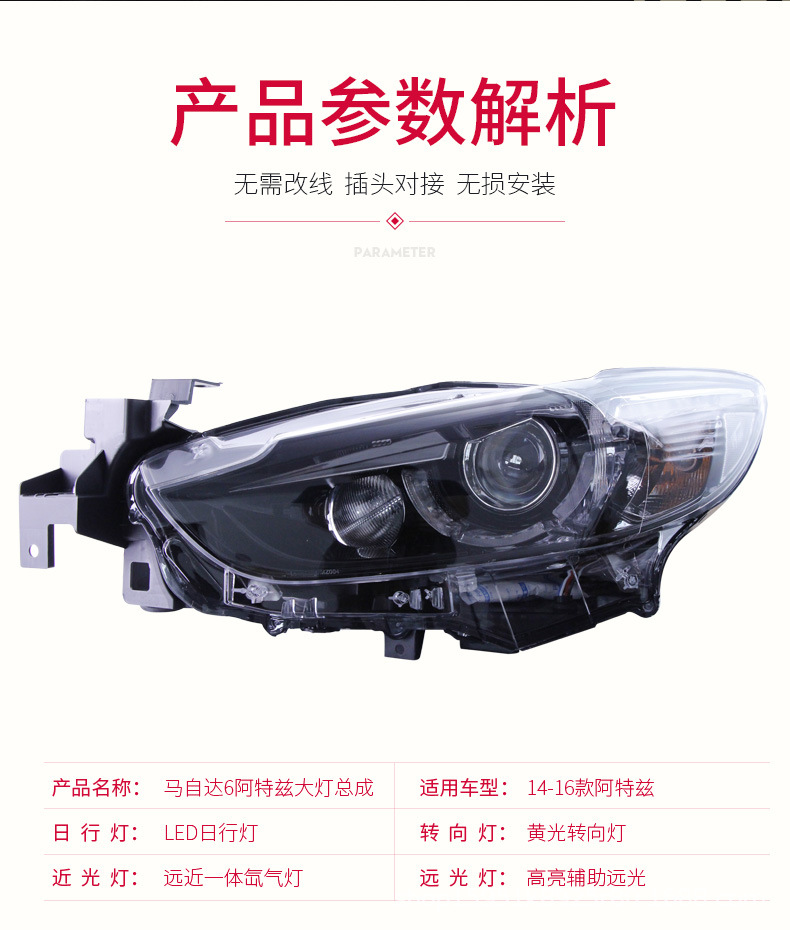 Full LED Headlight Assembly with LED DRL Projector Xenon Headlamp for Mazda 6 Atenza