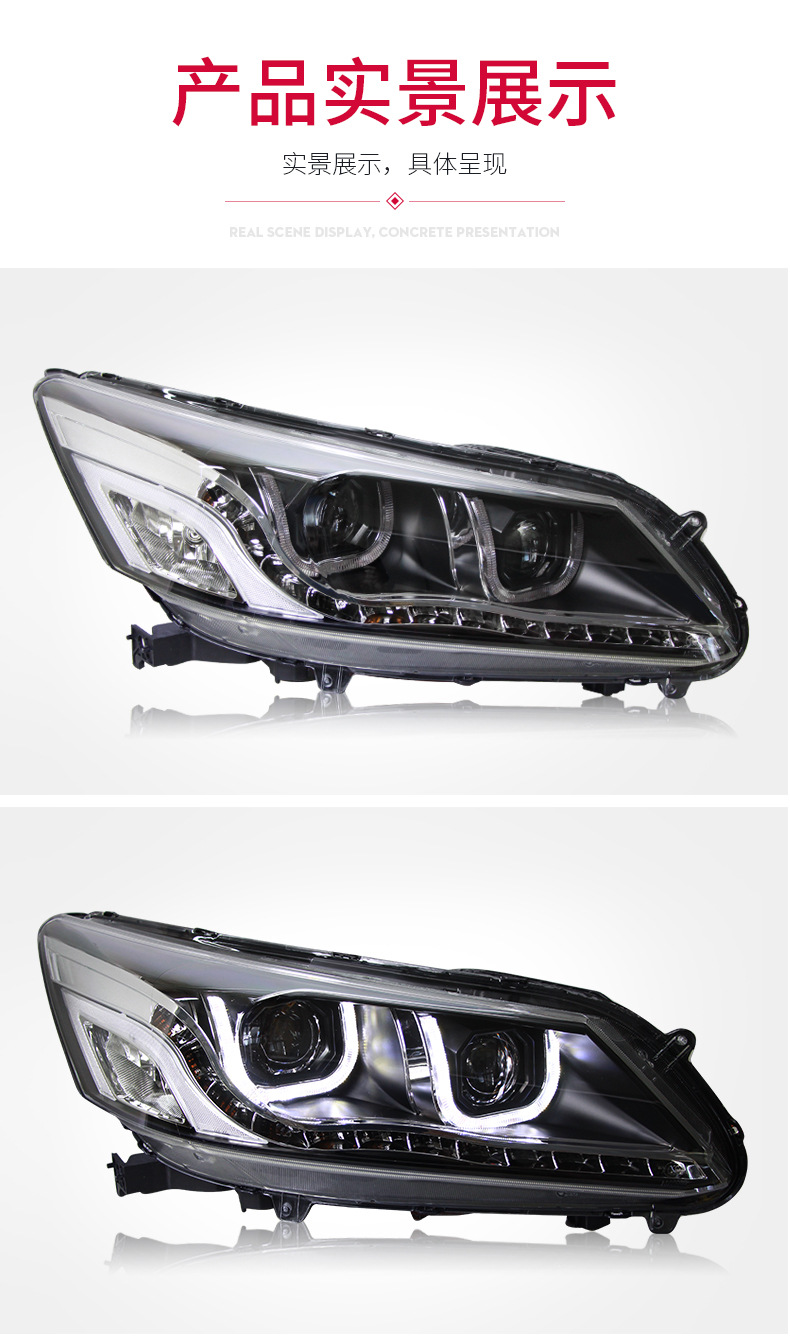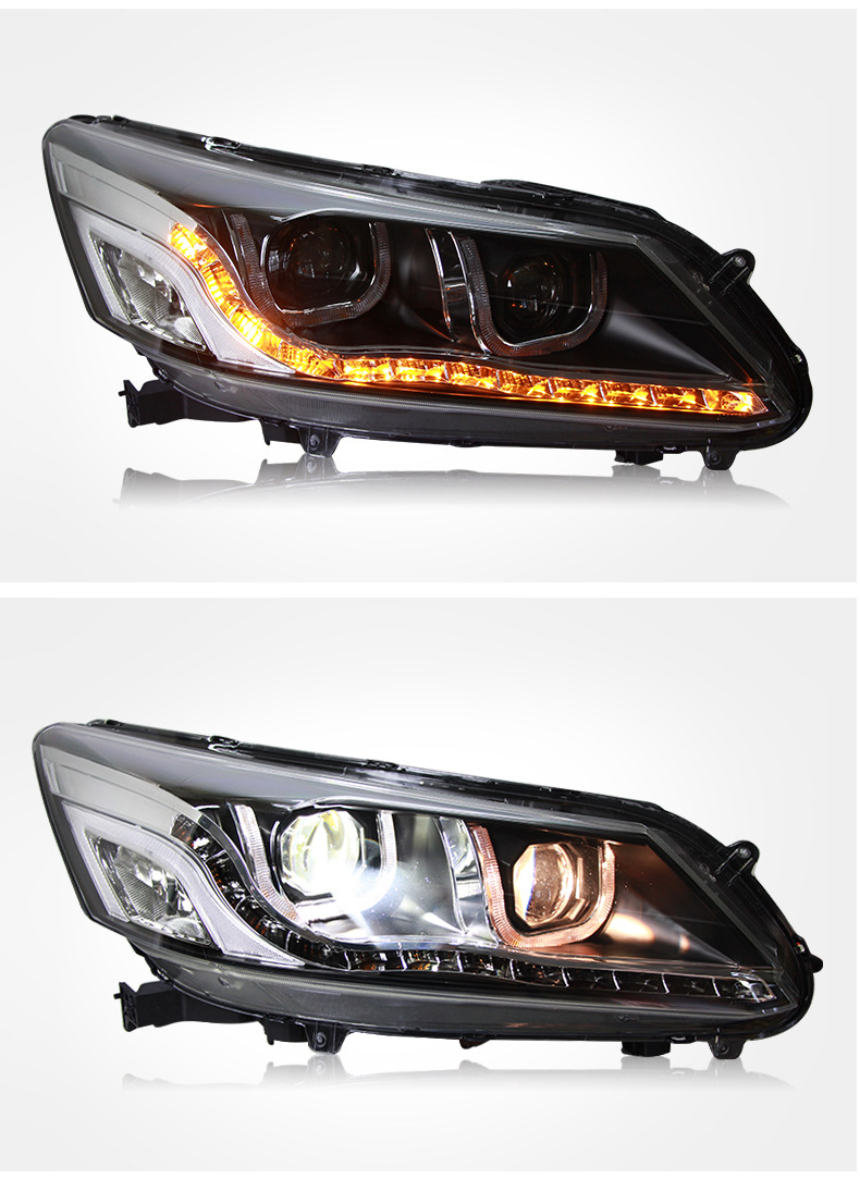 Full LED Headlight Assembly with LED DRL Turn Signal Dual Beam Projector Xenon Headlight for Honda 9th Accord